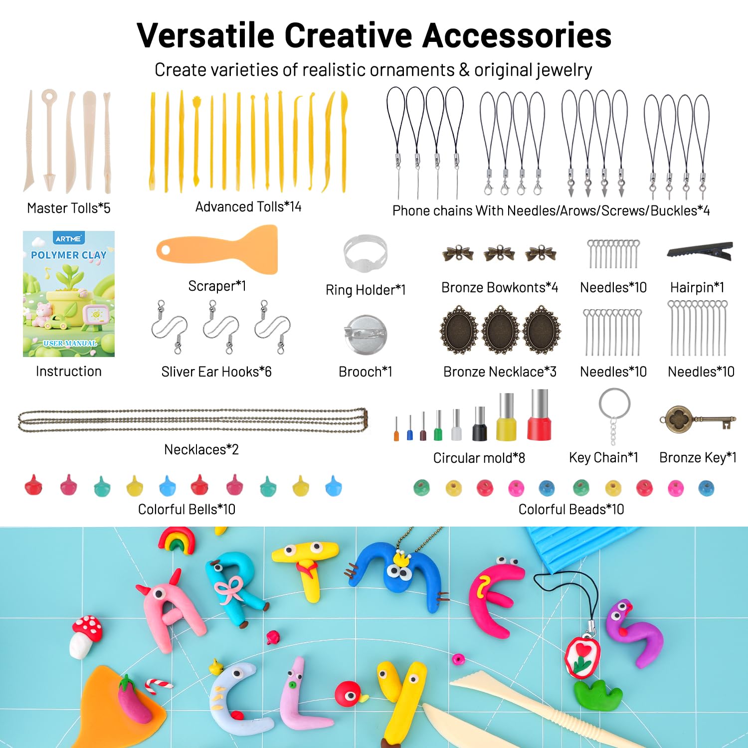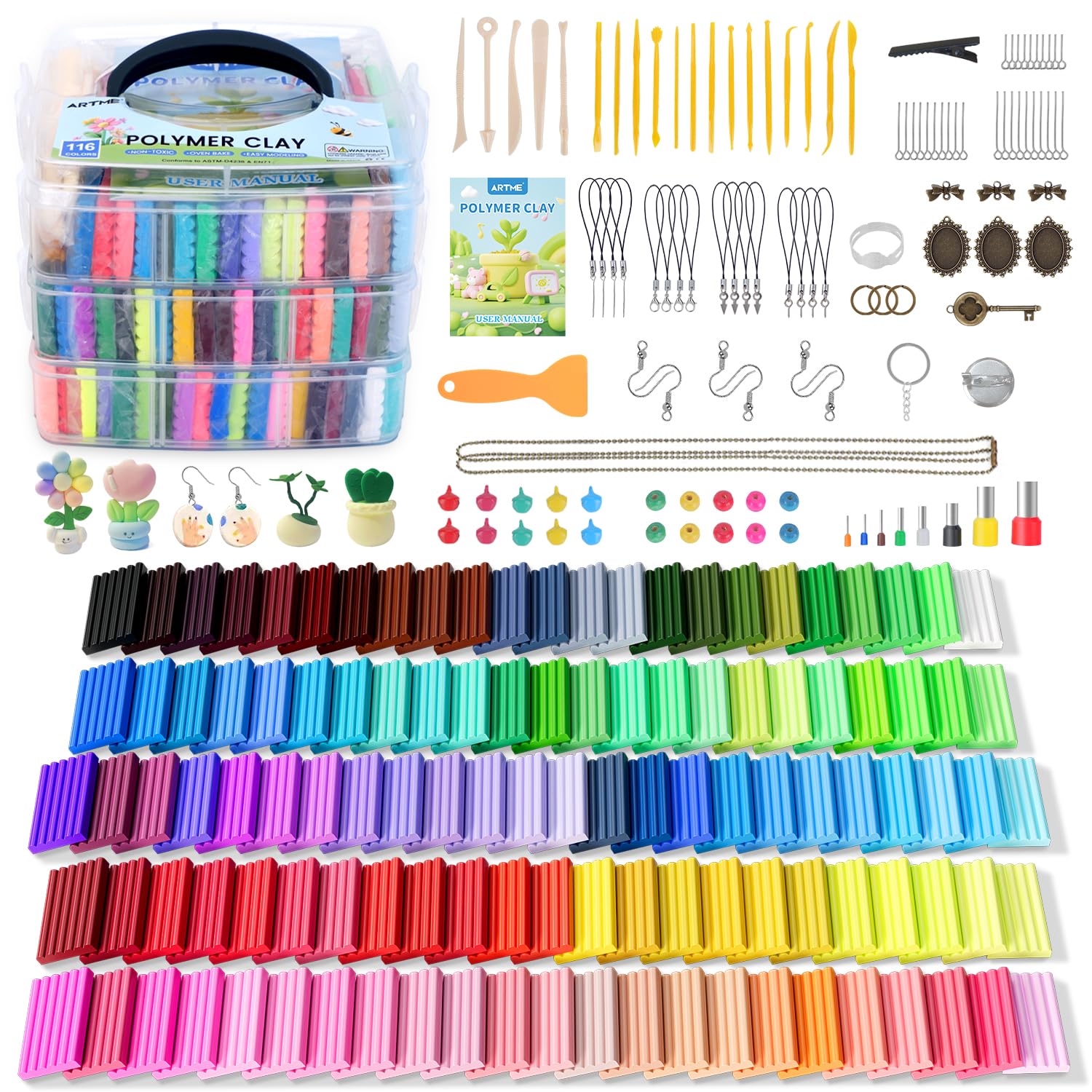 Artme Polymer Clay, 116 Colors Oven Bake Modeling Clay Starter Kits for Kids, Creative Polymer Clay Kit with Sculpting Tools and Jewelry Accessories, Non-Toxic, Ideal DIY Gifts for Adults and Teens