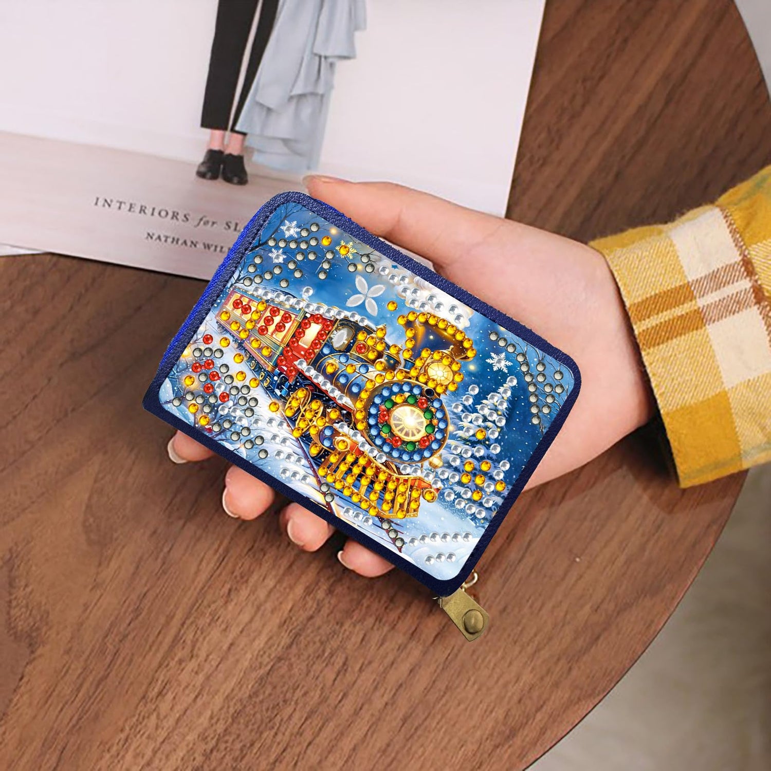 ARTopet Christmas Credit Card Holder Diamond Art Painting PU Wallet ID Card Case Zipper Anti-demagnetization Business Accordion Wallet Crafts Gift for Women Men Travel-Train