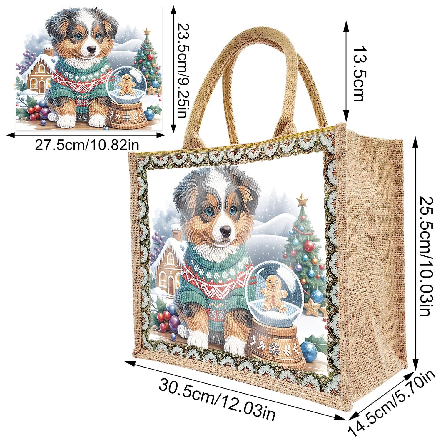 ARTopet DIY Diamond Art Painting Bags Christmas Handbag Handmade Shopping Tote Bags with Canvas Pattern Reusable Grocery Bag for Women Art Craft Gift-Dog