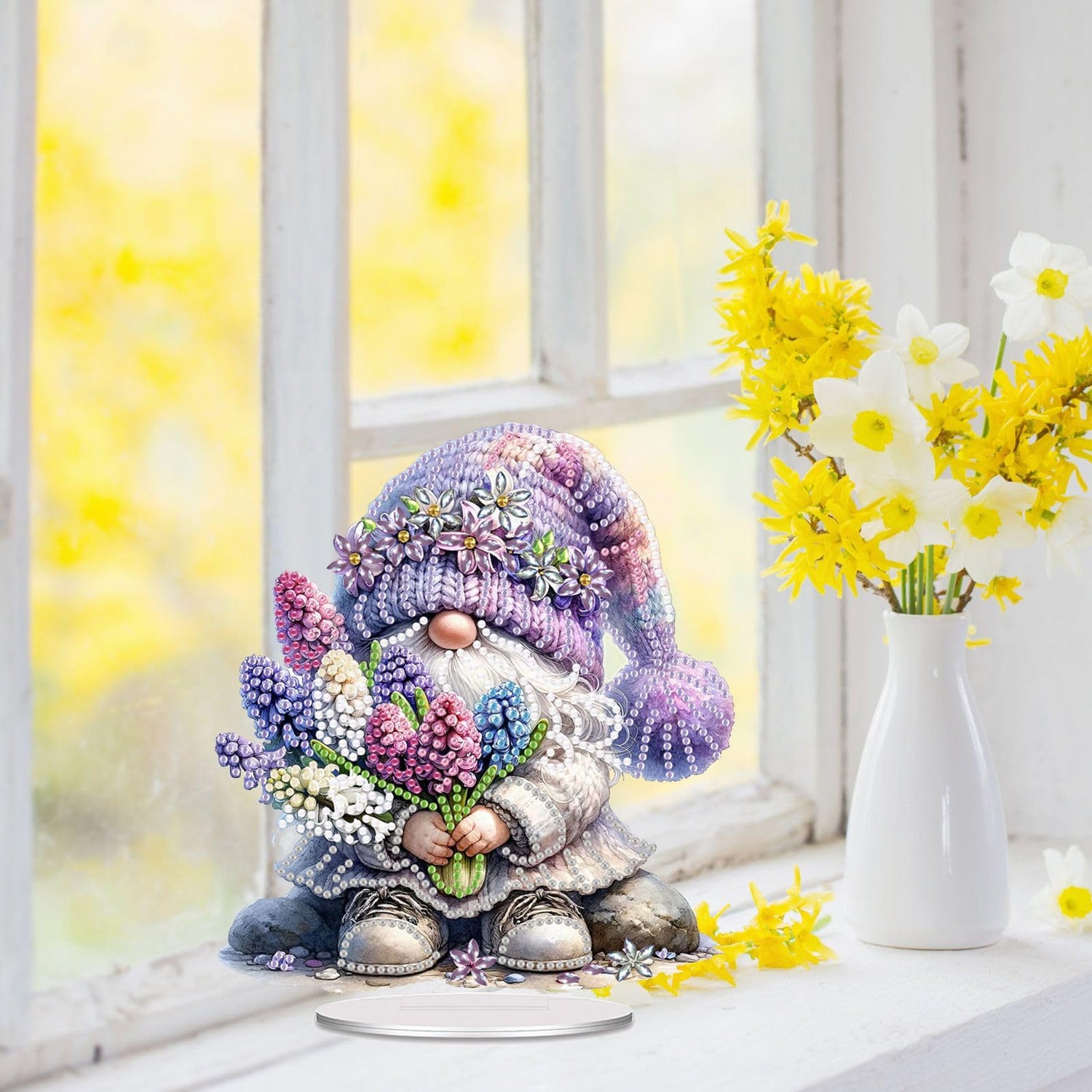 ARTopet DIY Diamond Desktop Ornament Special Shaped Crystal Lavender Gnome Acrylic Diamond Art Painting Tabletop Ornaments Single Sided Diamond Home Decor