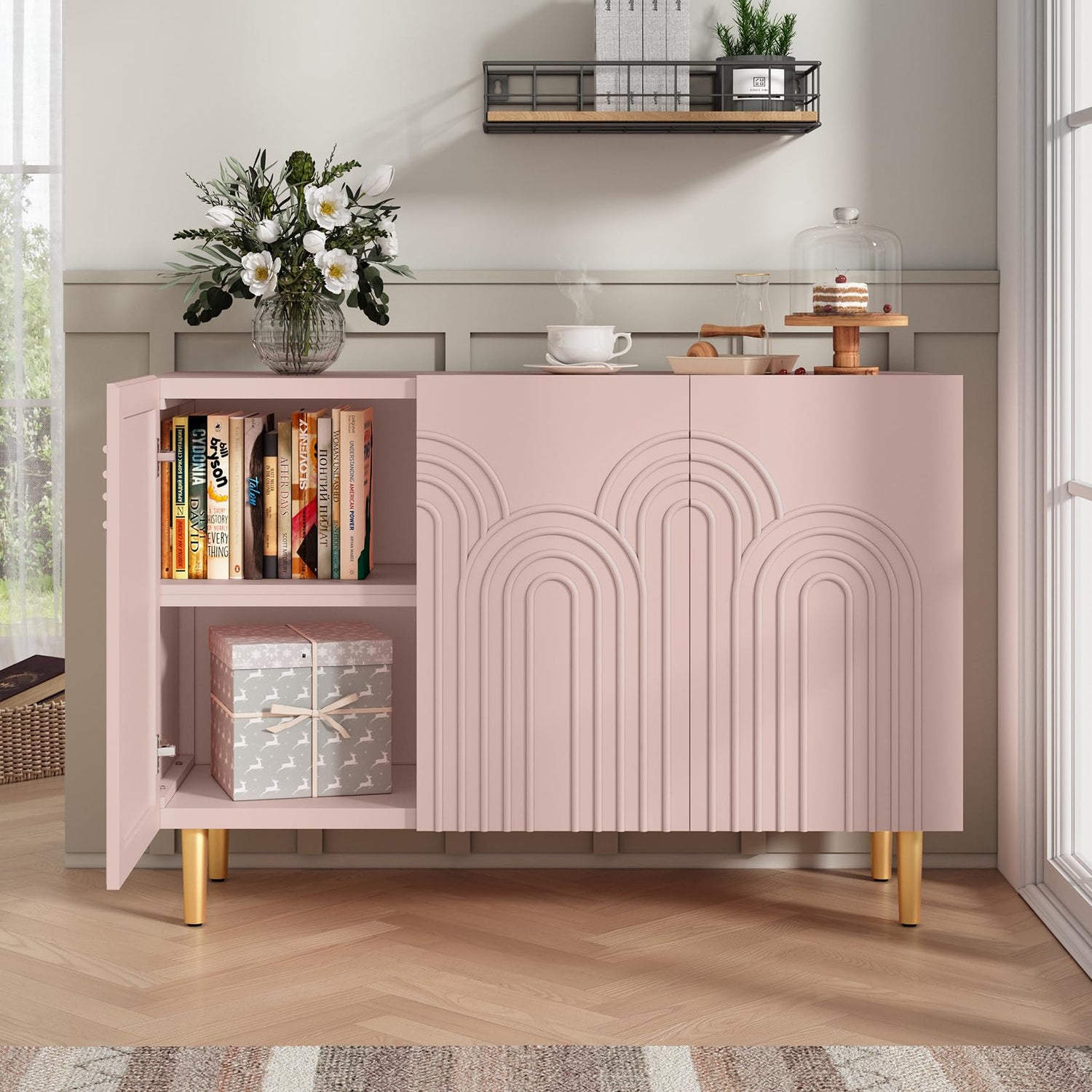 - 【Unique Color】This accent cabinet is available in blue and pink, and the unique color has become a magic weapon to brighten up the space. This buffet cabinet is both practical and aesthetic. It can be used as home decoration. It can be freely placed in the living room, kitchen, and can also be used as a TV cabinet.