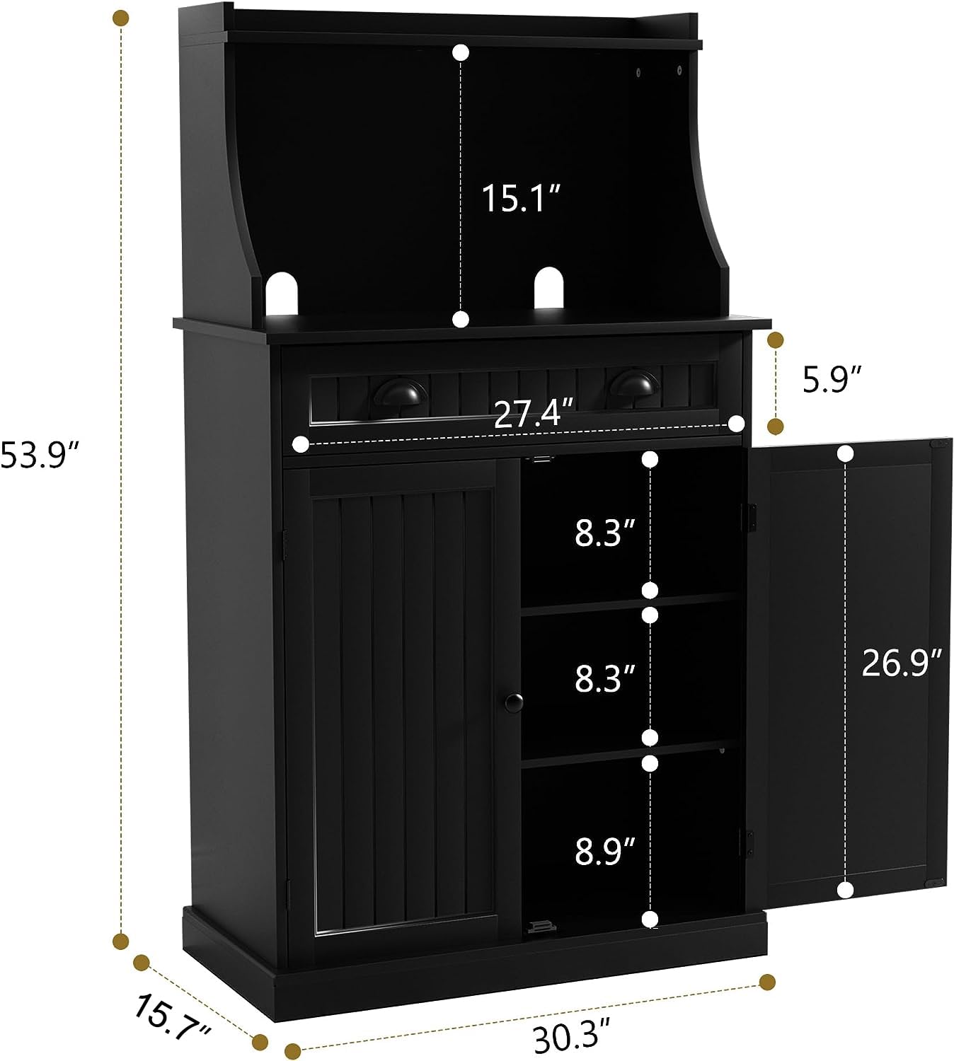 ARTPOWER 54" Kitchen Microwave Cabinet/Stand with Storage and Drawers, Pantry Storage Cabinet with Hutch & Adjustable Shelves for Kitchen, Dining Room, Living Room, Hallway in Black