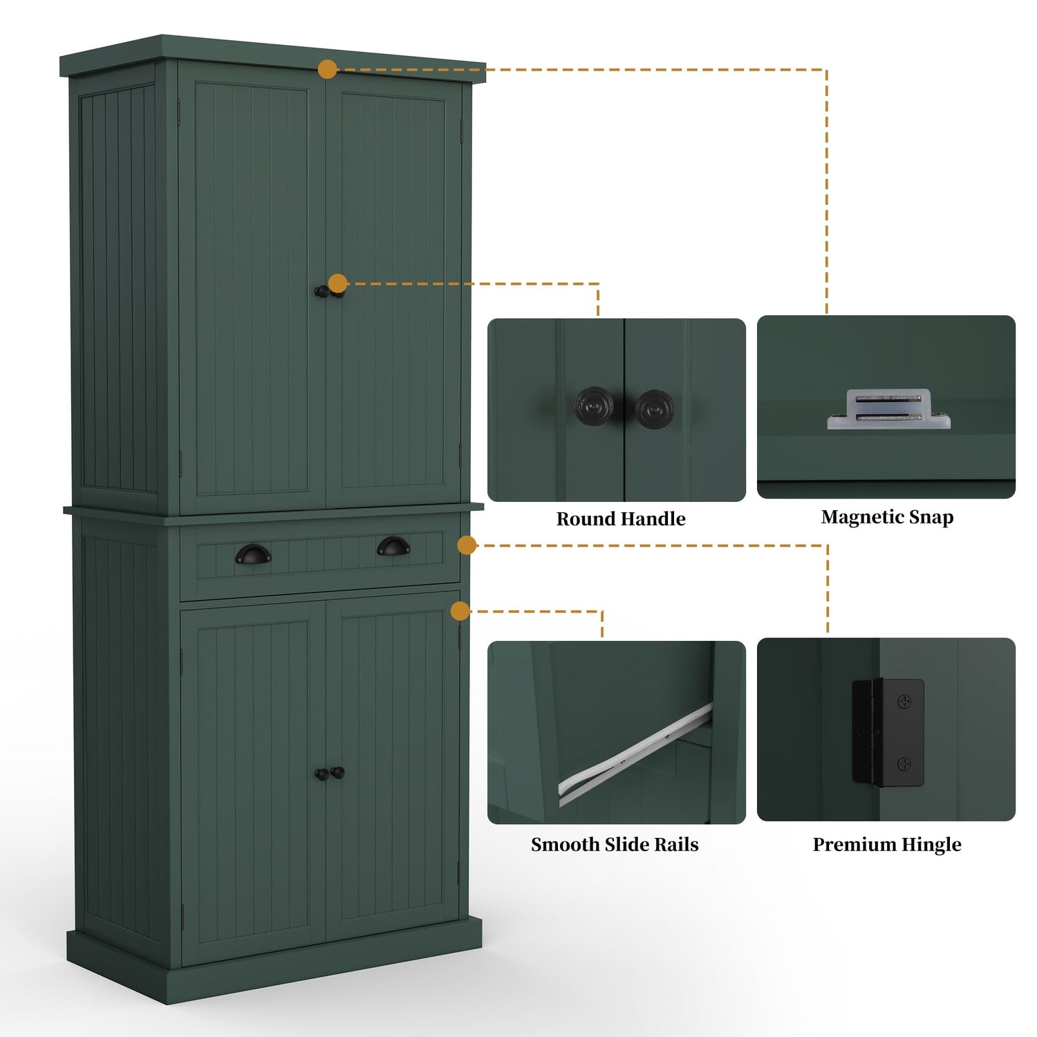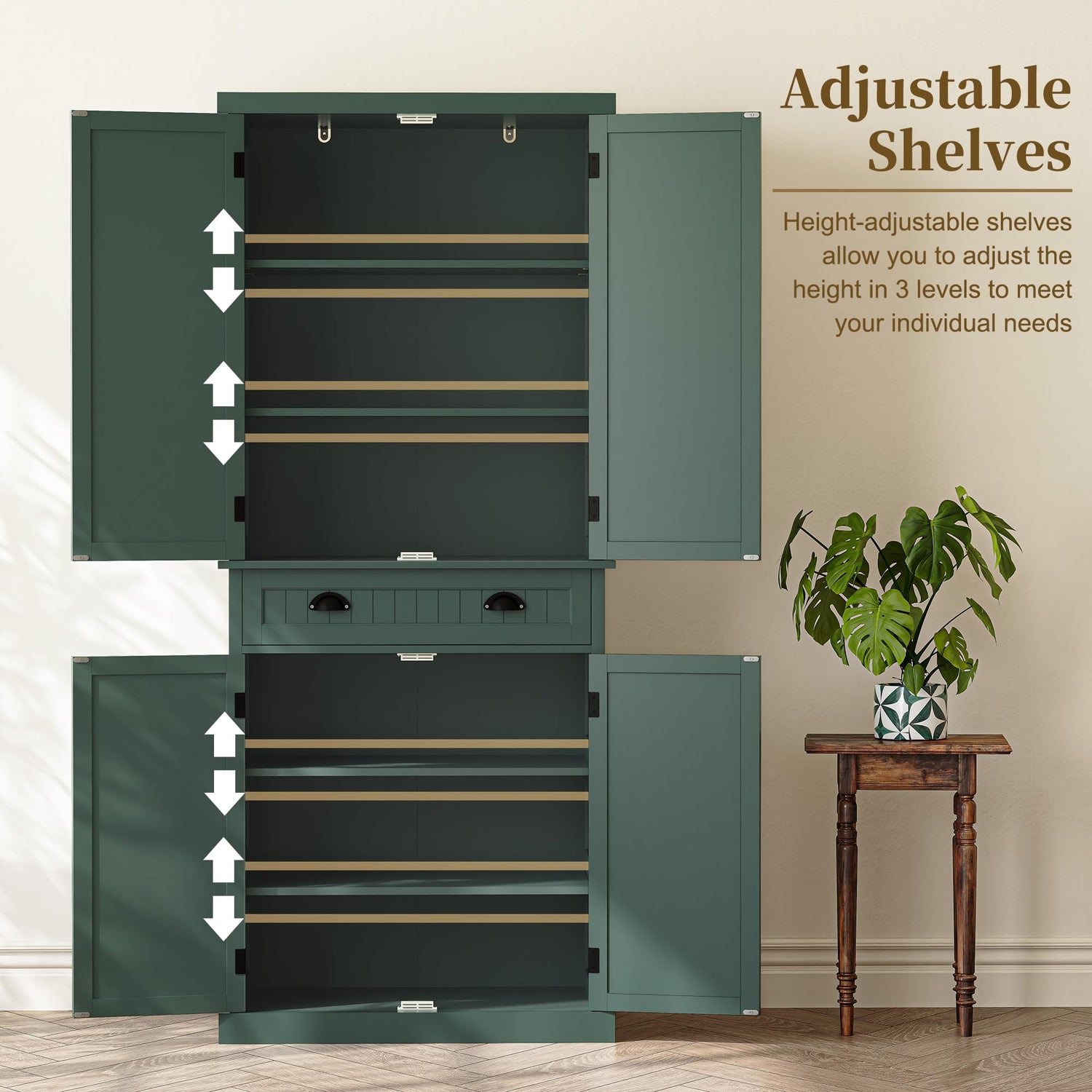 ARTPOWER 72" Tall Kitchen Pantry Storage Cabinet with Drawer and Adjustable Shelves, Pantry Cabinet for Kitchen, Bathroom or Hallway, Green