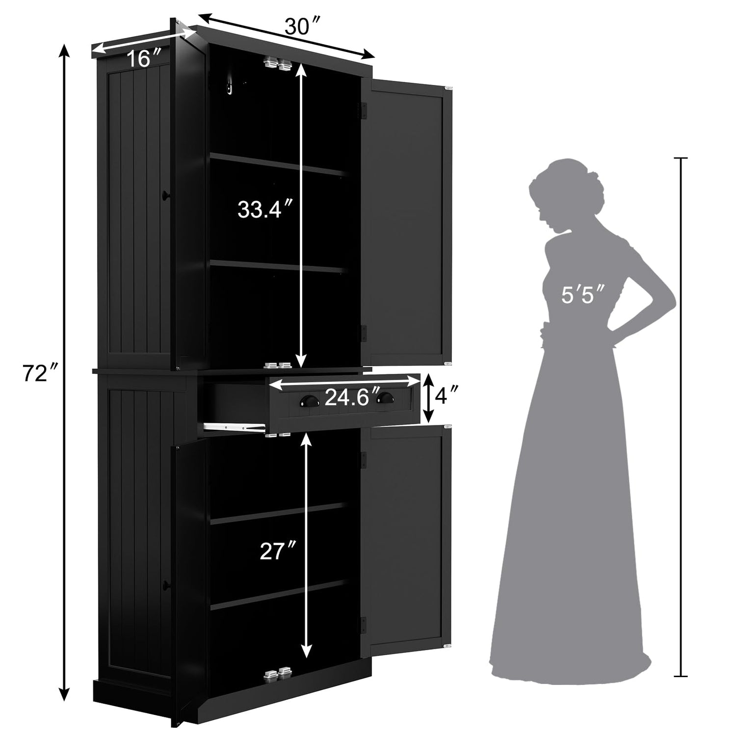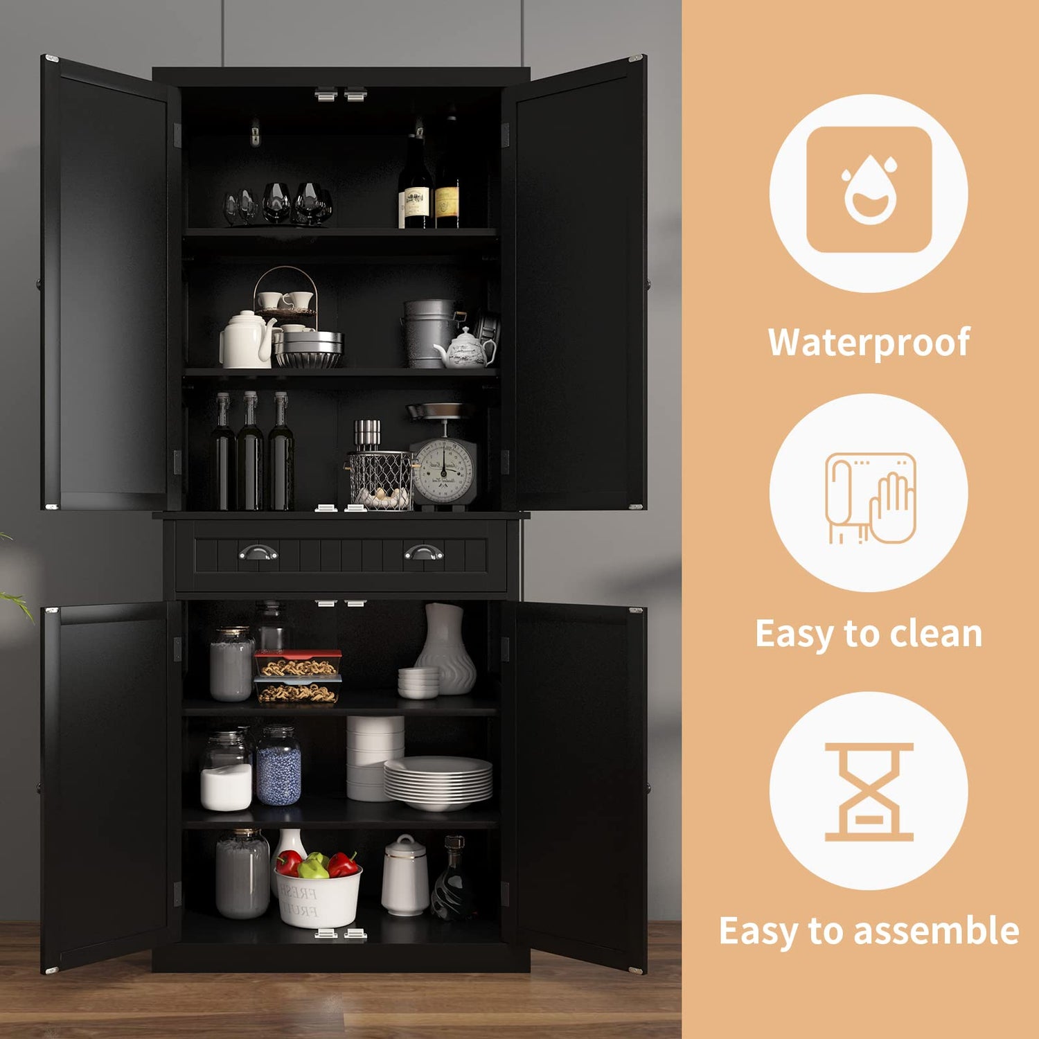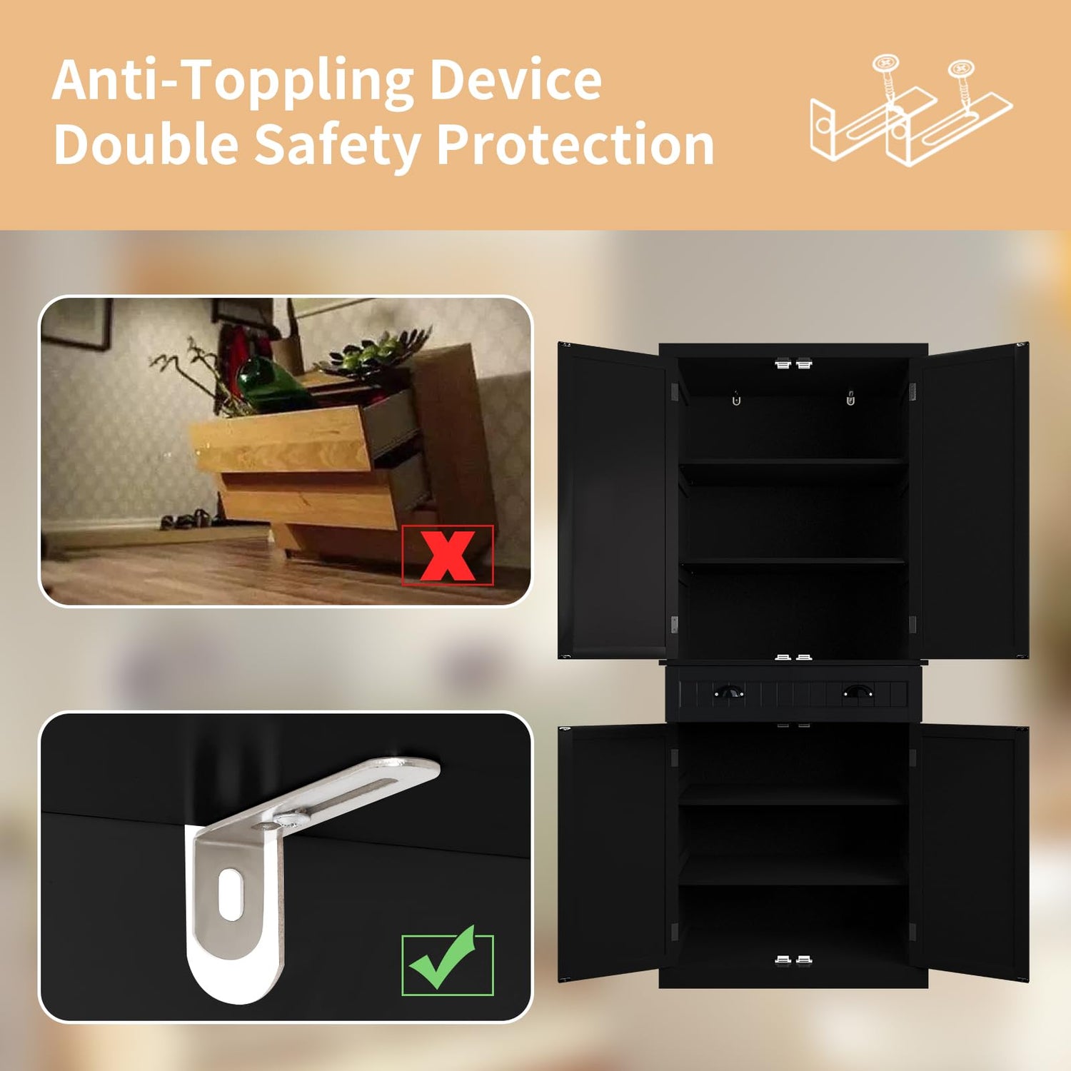 ARTPOWER Kitchen Pantry Storage Cabinet with Drawer and Adjustable Shelves, Pantry Cabinet for Kitchen, Bathroom or Hallway, Black