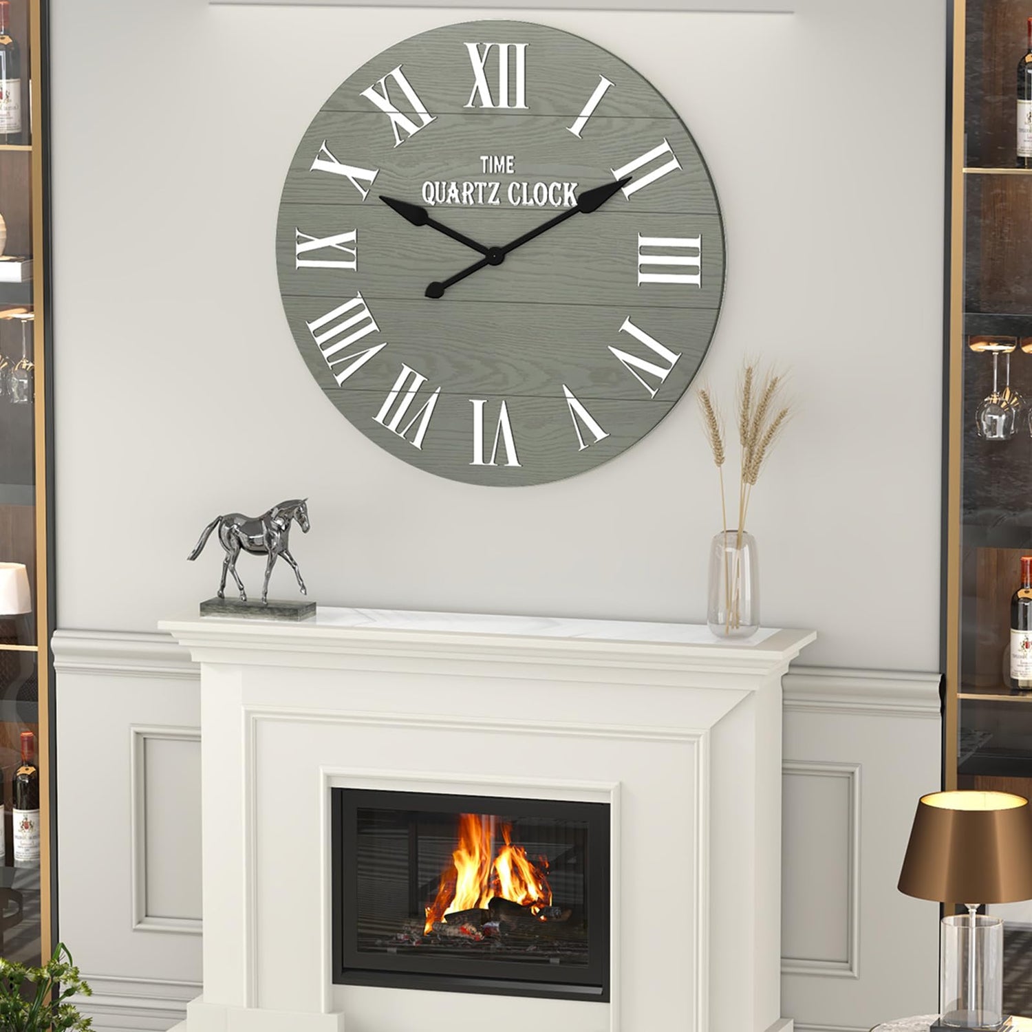 - Quality Material- This oversized wall clock has a sturdy wood frame and metal hands. With a durable frame, strong and smooth wood face, and secured numbers, this quartz clock is made from quality materials and designed to last