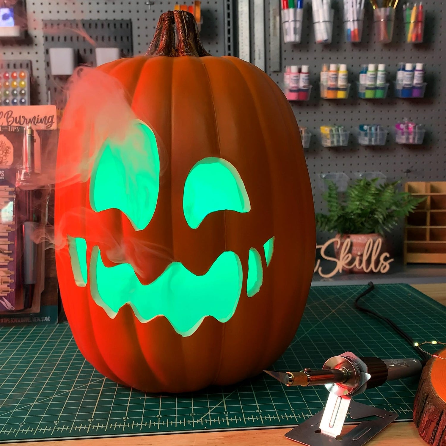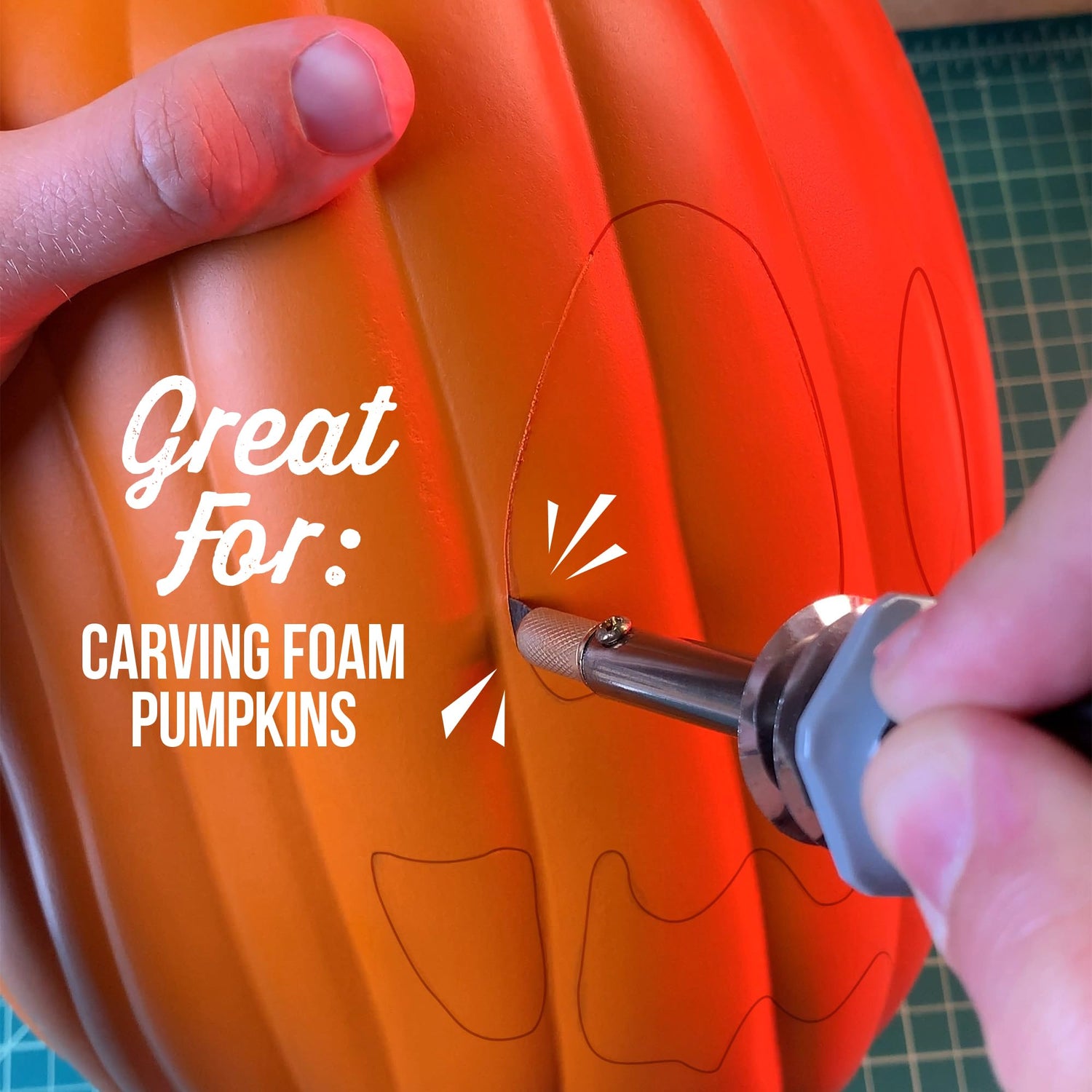 - Hot Knife Tip Attachments – This wood burning tool also includes 2 hot knife tips, allowing you to burn, cut, and carve with precision. Great for carving foam pumpkins for Halloween! Along with wood and foam, the hot knife cutting tool can also be used with wax, rubber, for leather burning, and more.