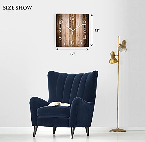ArtSocket Wooden Wall Clock Silent Non-Ticking, Brown Wood Barn Board Pine Plank Retro Square Rustic Coastal Wall Clocks Decor for Home Kitchen Living Room Office, Battery Operated(12 Inch)