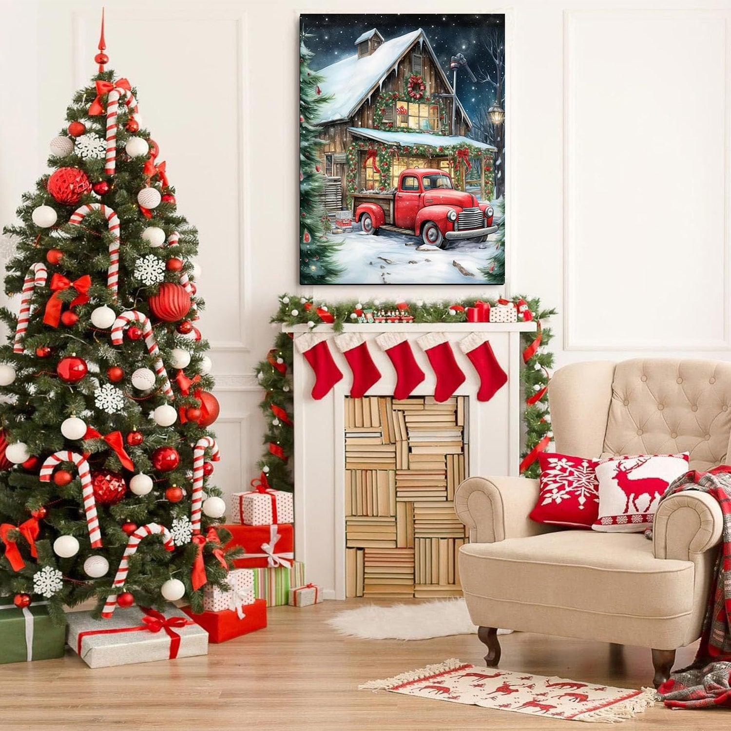 Arttoplus Christmas Paint by Numbers Kit for Adults Beginner-Red Truck Adult Paint by Number Kits on Canvas, DIY Acrylic Oil Painting by Numbers for Adults for Gift Home Wall Decor(16x20inch)