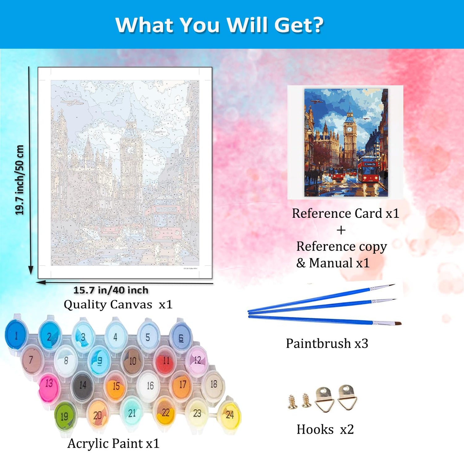 - 【You Can Get】Painting by Numbers kit Include 1pcs printed textured art canvas 16X20 inch (without framed), 1 set acrylic paints, 1 set brushes(include 3pcs), 1 color postcard guide, 1 paper copy of numbered canvas for reference