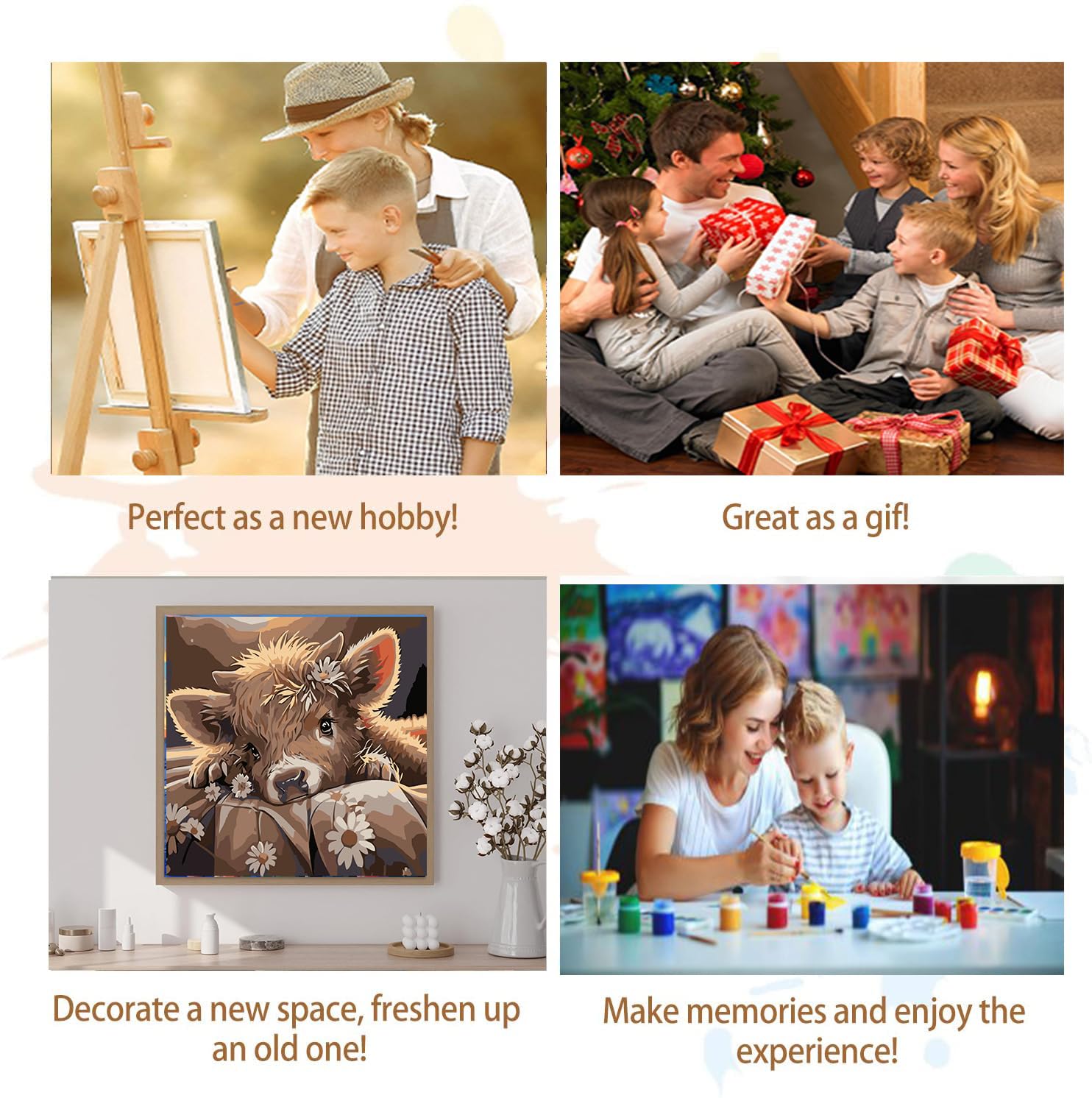 Artunion Framed Paint by Numbers Kit for Adults Beginners & Kids Ages 8-12,Highland Cow Paint by Number with Frame,Funny Animals Paint by Numbers Kit on Canvas 10 * 10 Inch Without Easel