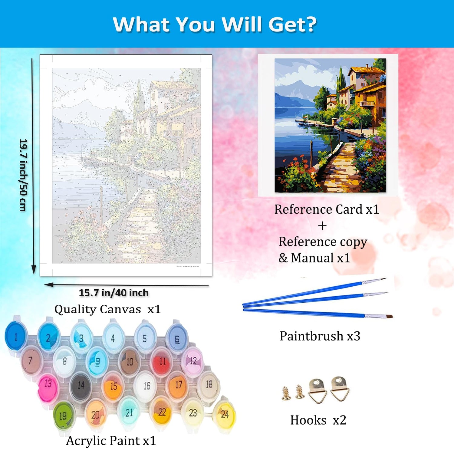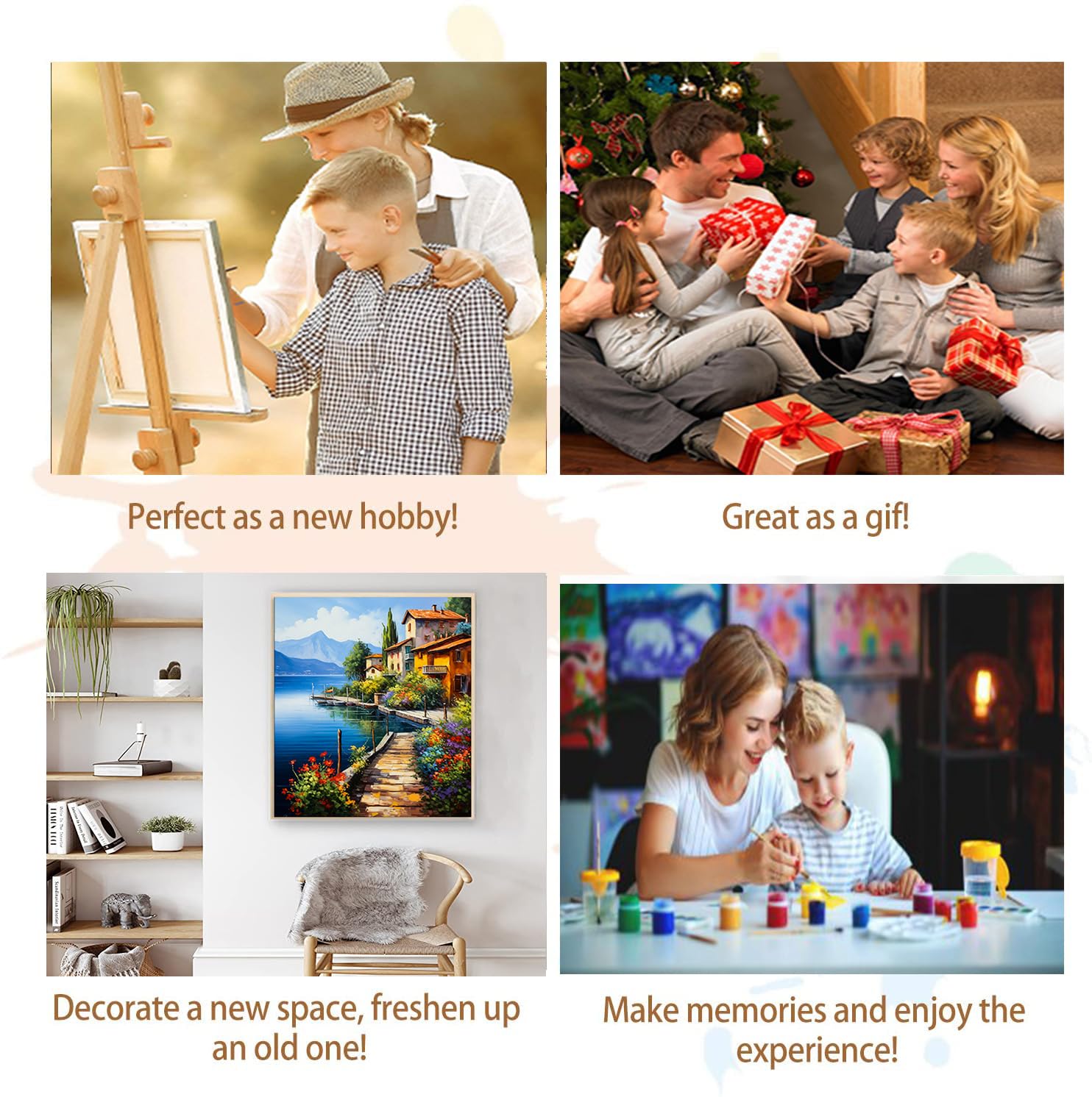 Artunion Lakeside Village Docks Paint by Numbers for Adults, Seadide Landscape Lake Paint by Number Kits, DIY Oil Painting Paint by Number Kits on Canvas Arts Craft for Home Wall Decor 16x20 Inch