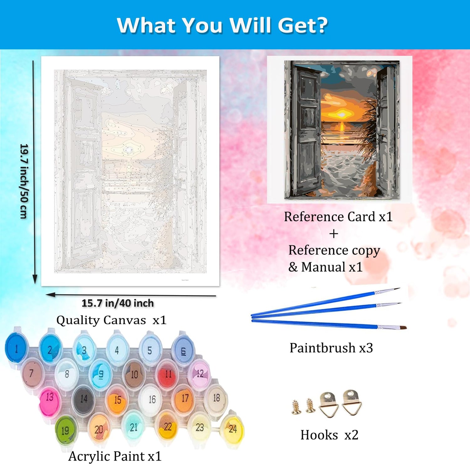 - 【You Can Get】Painting by Numbers kit Include 1pcs printed textured art canvas 16X20 inch (without framed), 1 set acrylic paints, 1 set brushes(include 3pcs), 1 color postcard guide, 1 paper copy of numbered canvas for reference
