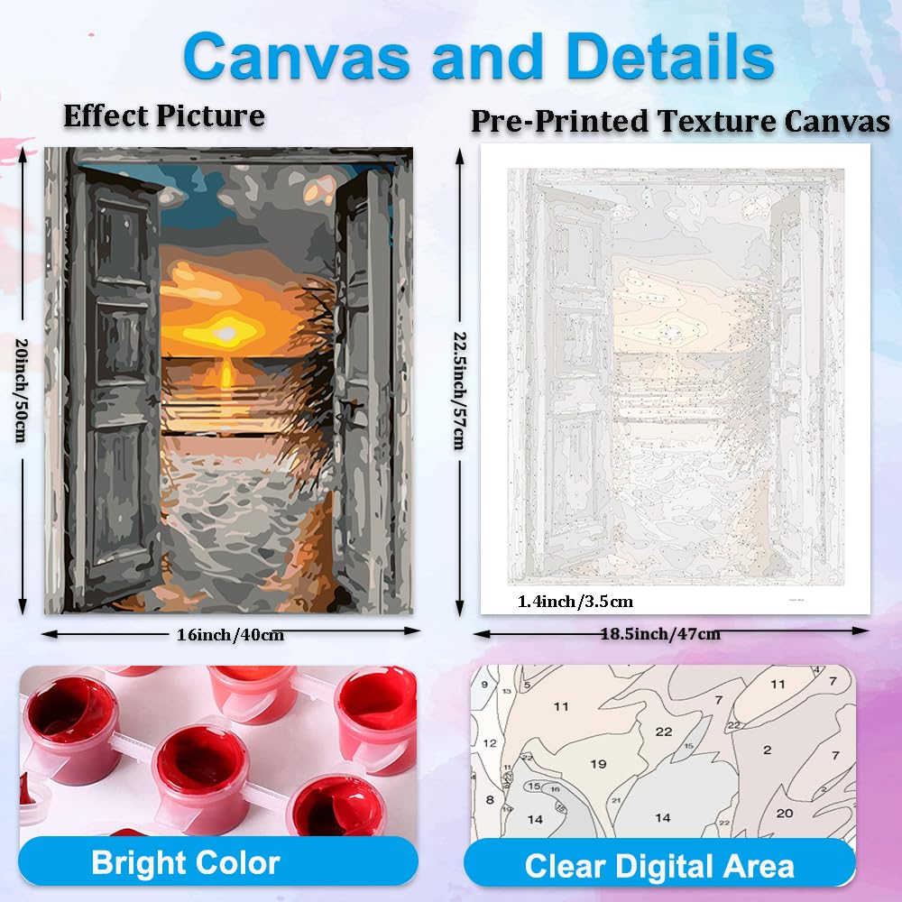 Artunion Sunset Beach Paint by Numbers for Adults Beginner,Easy Door to Beach Paint by Number Kits, DIY Oil Painting Paint by Number Kits on Canvas Arts Craft for Home Wall Decor 16x20 Inch