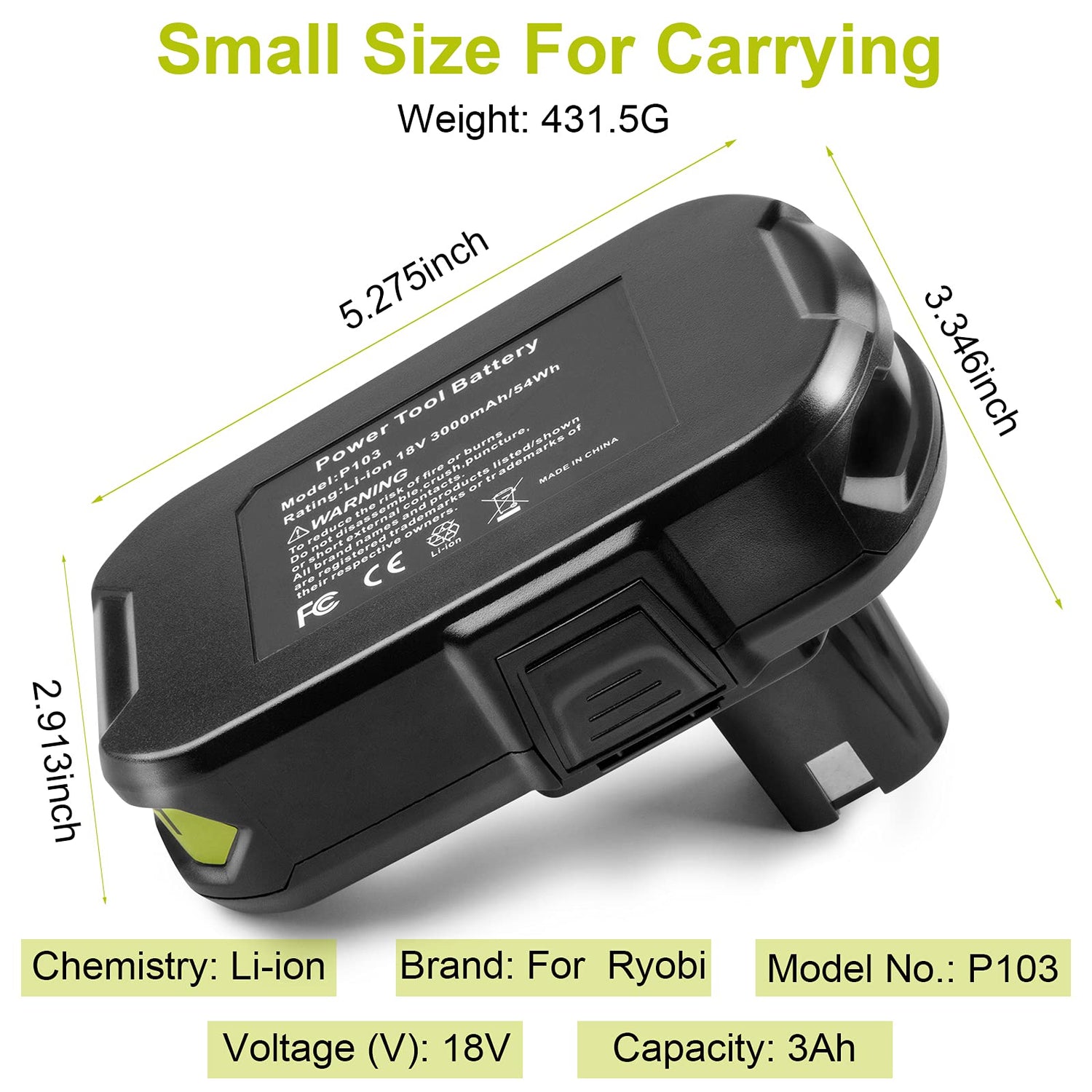 - 【Battery Features】Replacement for ryobi 18v battery Type: Lithium ion | Voltage:18V | Capacity: 3000mAh. FCC, ROHS, CE certified, providing much longer running time. Battery fit all for Ryobi 18v one+ system cordless tools, such as routers, string trimmer, reciprocating saws, circular saws, blowers, etc.