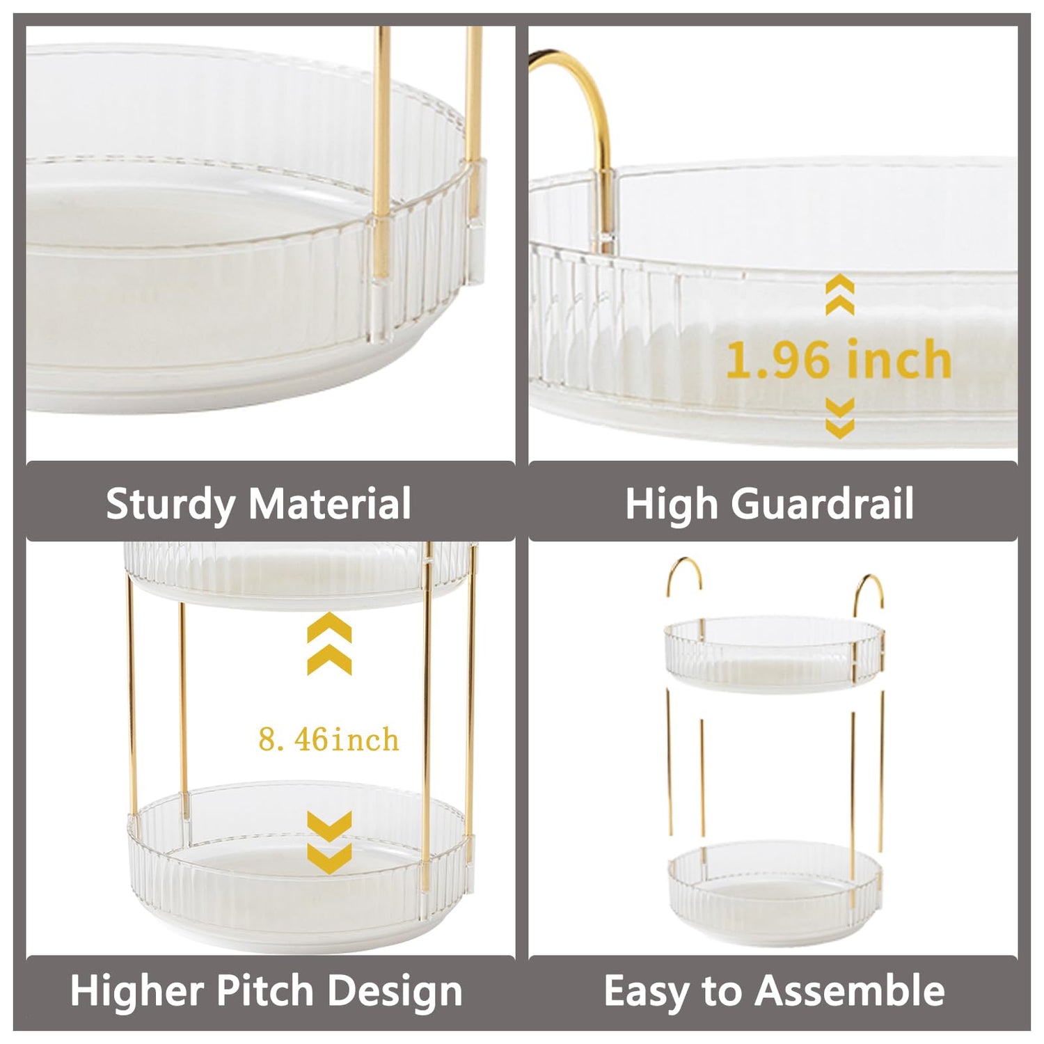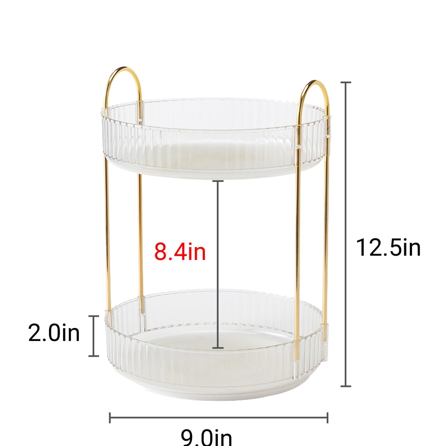 - 2-LAYER LARGE CAPACITY - The makeup organizer for vanity has two layers without partition and can be placed according to your own preference.It can be used to store perfume, nail polish, lipstick, powder blusher, eye shadow, base makeup, makeup powder and nail beauty tools, as well as facial cleanser and other toiletries to meet your daily needs while saving space for you, It can be disassembled freely and used as a layer