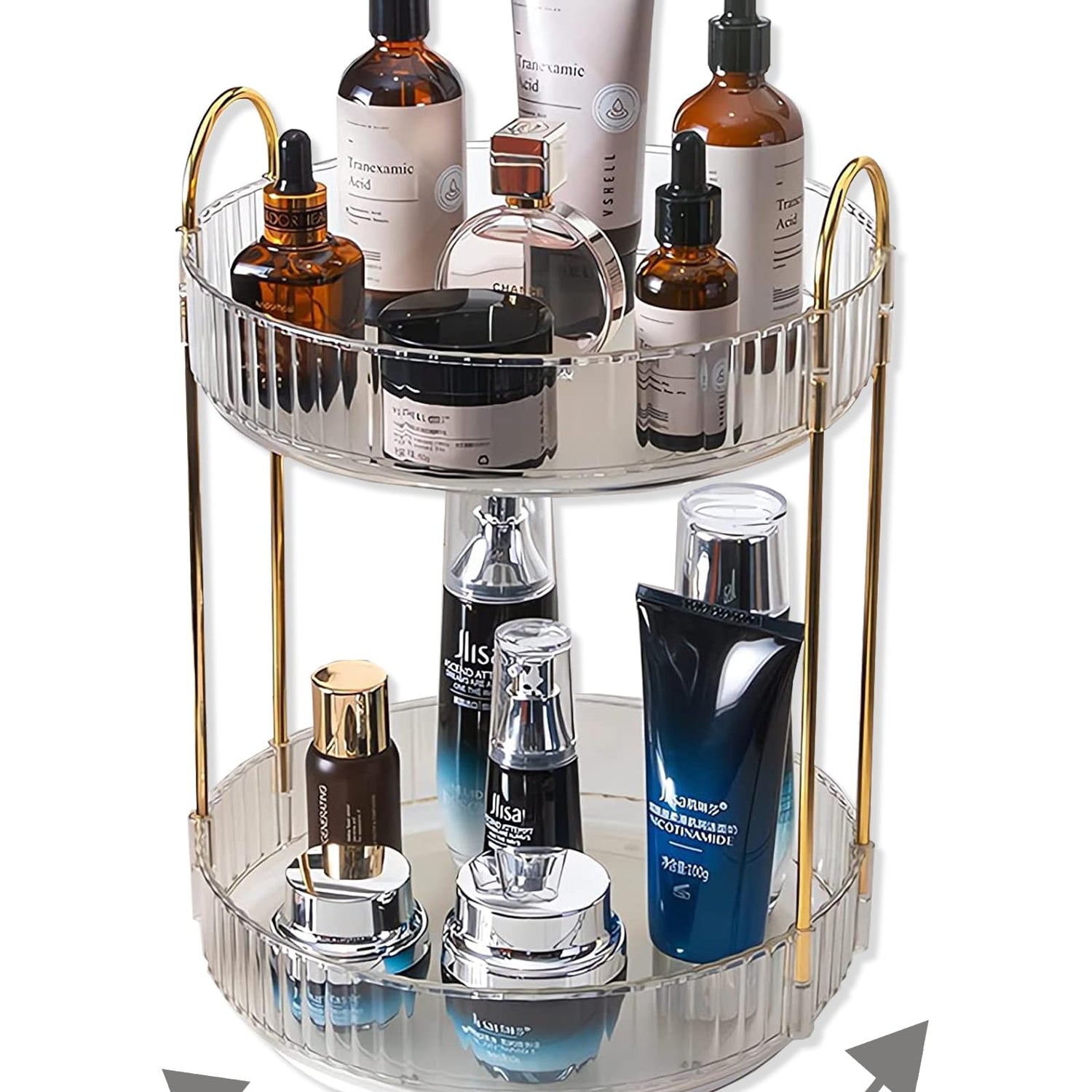 - STREAMLINE YOUR BEAUTY ROUTINE WITH 360° ROTATION - The skincare organizers boasts a large capacity make up organizers and storage with the added convenience of a 360-degree rotating feature. No more digging through cluttered drawers or struggling to find your favorite beauty products. With our cosmetics organizer, everything is easily accessible and within arm's reach with just a simple spin.