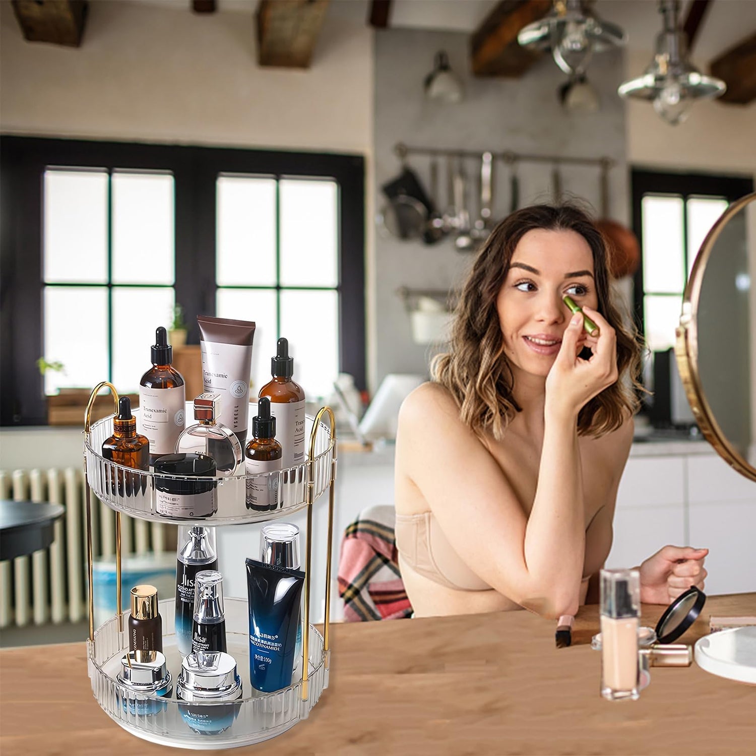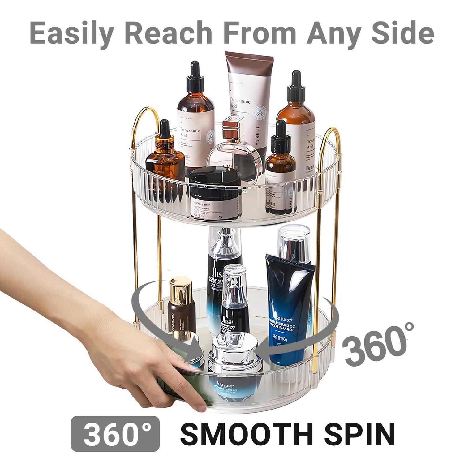 Asayuee 360 Rotating Makeup Organizer,2 Tier Large Capacity Make Up Organizers and Storage,Skincare Perfume Vanity Organizers,Bathroom Cosmetics Storage Organizer Countertop(Clear-2 Tier)