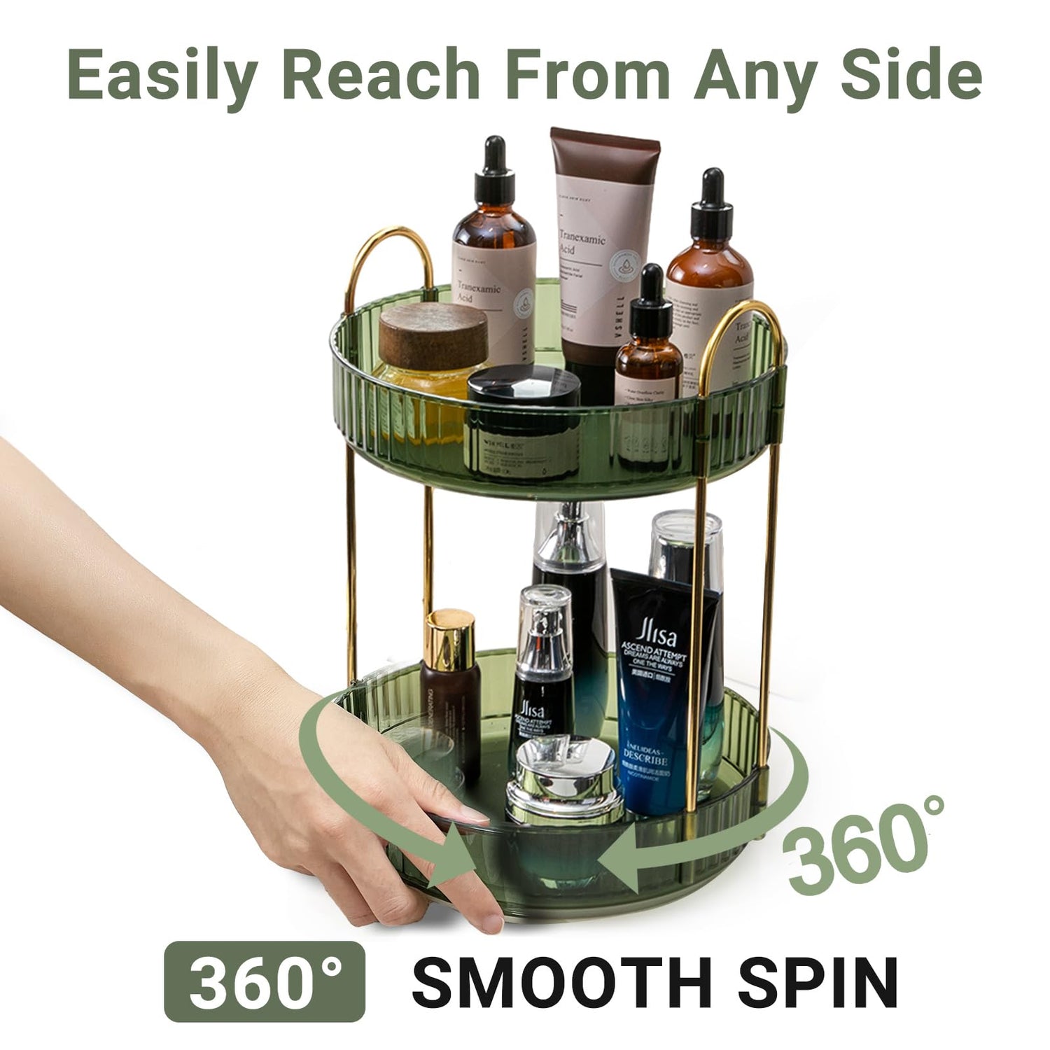 Asayuee 360 Rotating Makeup Organizer for Vanity,2 Tier Large Capacity Cosmetics Skincare Organizers,Bathroom Countertop Organizer Spinning Perfume Organizer,Dresser Vanity Organizer (Green-2 Tier)