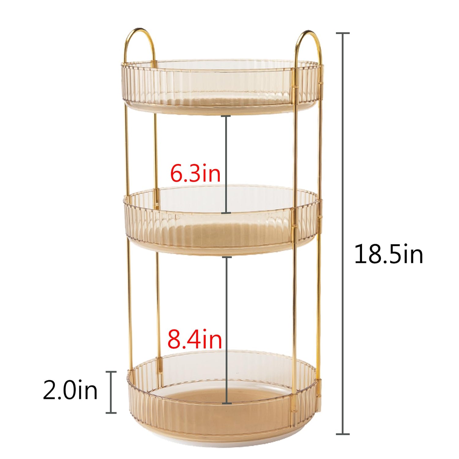 - 3-LAYER LARGE CAPACITY - The gold makeup organizer has three layers without partition and can be placed according to your own preference.It can be used to store perfume, nail polish, lipstick, powder blusher, eye shadow, base makeup, makeup powder and nail beauty tools, as well as facial cleanser and other toiletries to meet your daily needs while saving space for you, It can be disassembled freely and used as a layer.