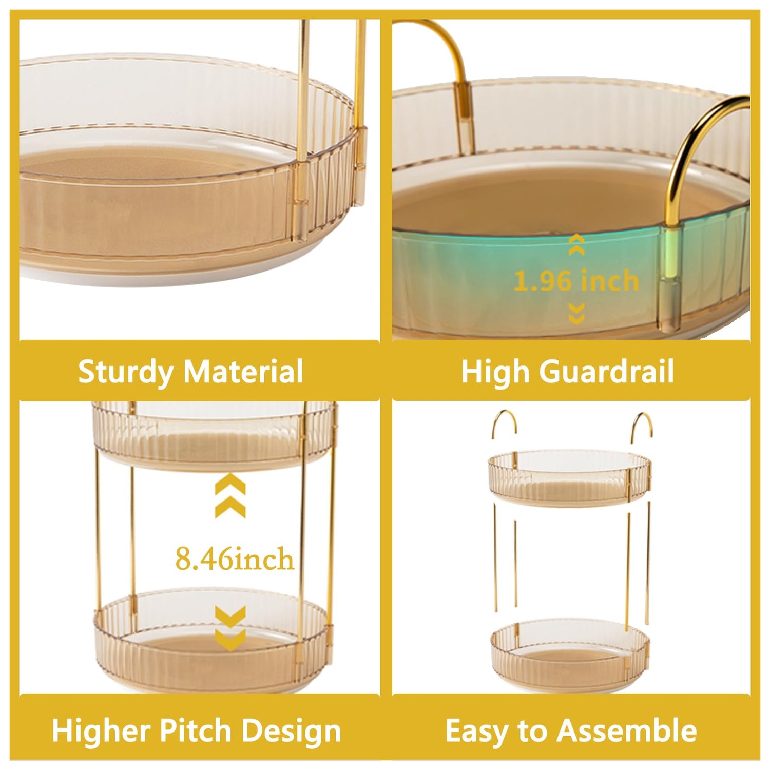 - RAISED GUARDRAIL & HIGHER PITCH DESIGN - The vanity storage features raised guardrails that can effectively prevents items on organization from dropping.Plus, the ample space between the two tiers ensures that even your taller bottles and jars can be easily accommodated without any hassle.