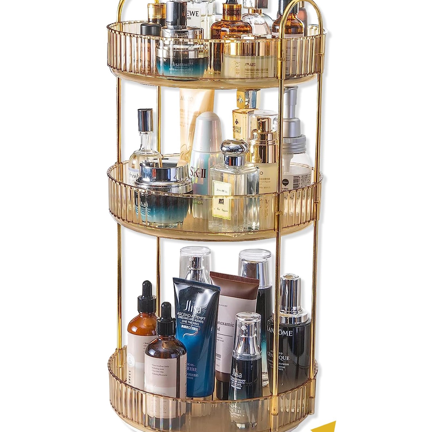 Asayuee 360 Rotating Makeup Organizer for Vanity,3 Tier Large Capacity Vanity Storage,Skincare Perfume Spinning Organizer,Bathroom Cosmetics Storage Makeup Stand Organizer (Gold-3 Tier)