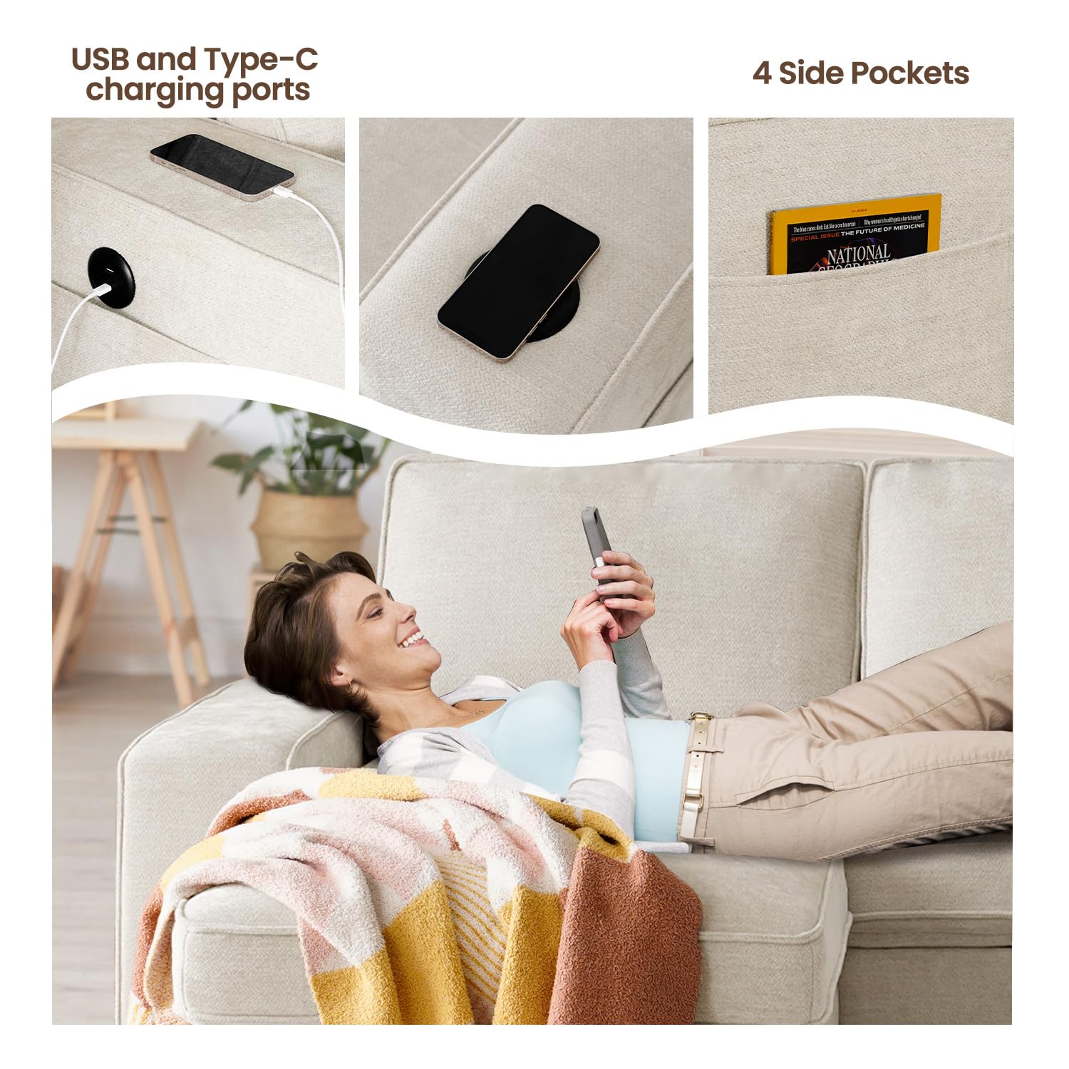 ASHOMELI 99" Convertible Sleeper Sofa Bed,L Shaped with Storage Chaise Pull Out Couch for Living Room,USB and Type-C,Removable Washable Chenille Covers (Beige)