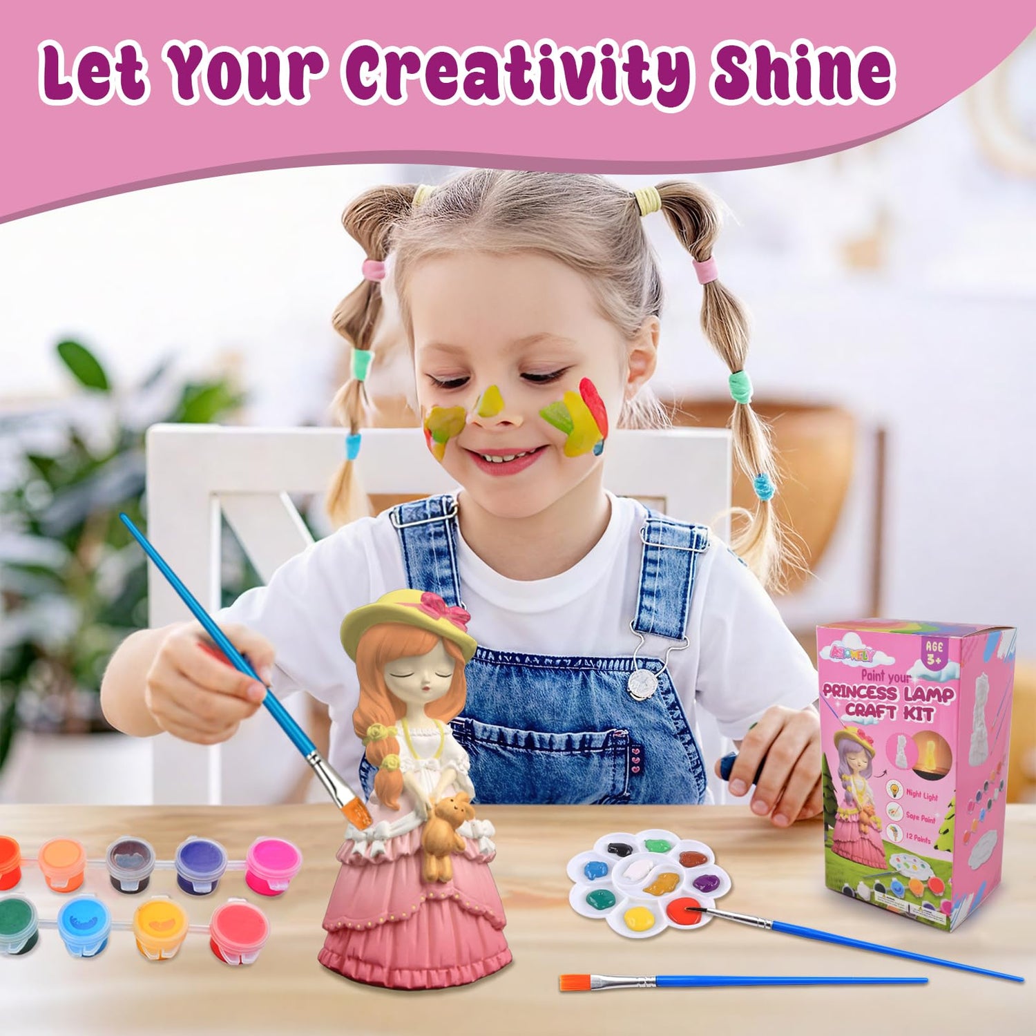 ASIOWELY Paint Your Own Princess Girls Lamp Kits,Arts and Crafts Supplies for Kids Toys Ages 4-6-8,DIY Art Night Light Painting for Girl Ages 5-10,Birthday Gifts for 3-12+ Year Old Toddler Teens Adult