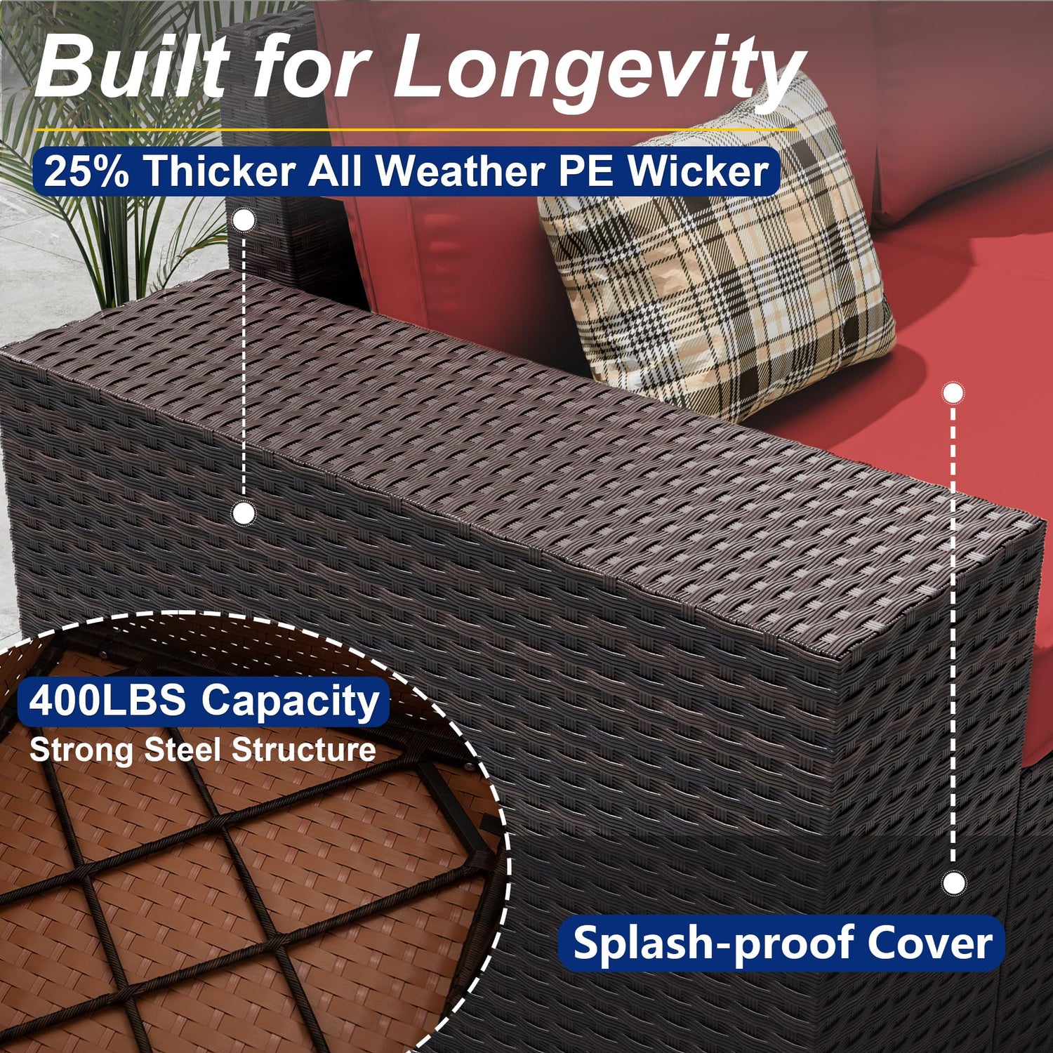 - Sturdy & Attractive Outdoor Furniture: Our Patio Furniture Set is constructed from a rust-resistant steel frame and super-tight hand woven PE rattan. The high-density rebound cushions and softback pillows give you a comfortable seating experience. The sofa seating is quite roomy, provides spacious space to sit and rest comfortably.