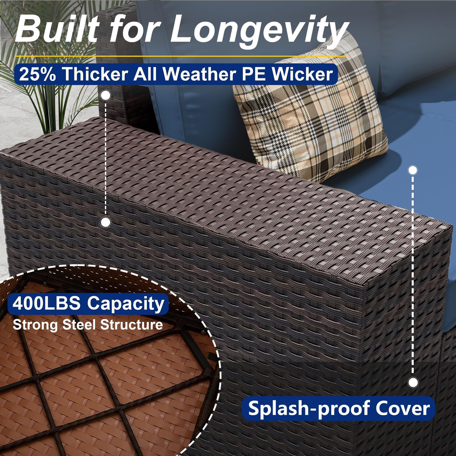 ASJMR Outdoor Patio Furniture Set, 12 Pieces Outdoor Sectional Furniture High Backrest Patio Set, All-Weather PE Rattan Patio Conversation Set w/Coffee Tables & Cushions-(Dark Blue)
