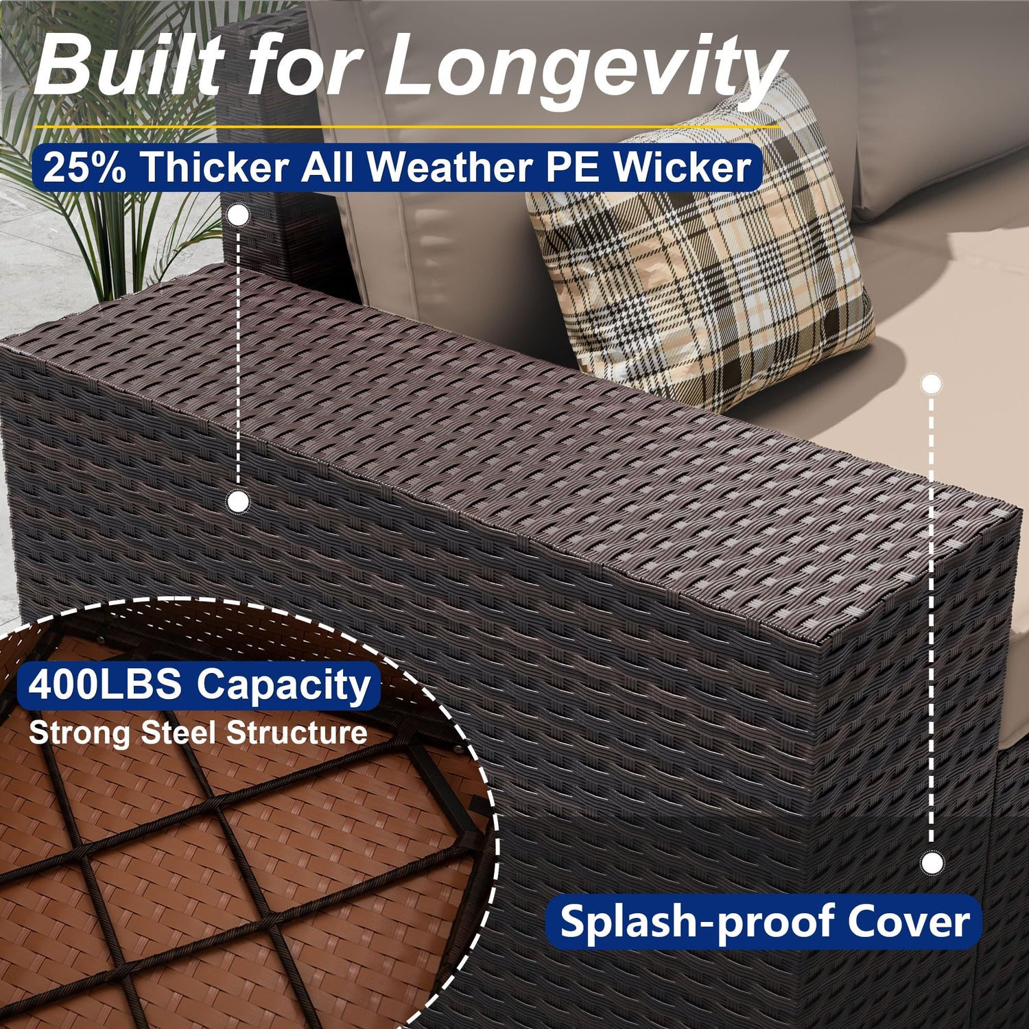 ASJMR Outdoor Patio Furniture Set, 12 Pieces Outdoor Sectional Furniture High Backrest Patio Sofa, All-Weather PE Rattan Patio Conversation Set with Coffee Table & Cushions(Brown).