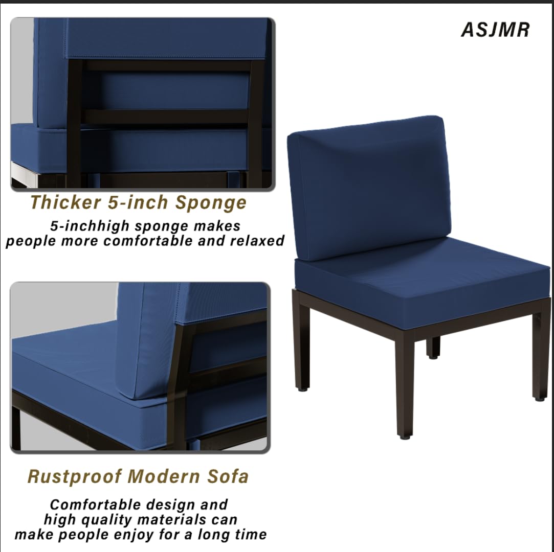 - 【Suitable For Various Spaces】This aluminium modern outdoor sectional set comes with wide and deep seats,the backrest is 30.5 inches.The soft and thick 5.1" cushion with zipped, removable and washable cover provides exceptional comfort for your relaxation time.Suitable for balcony,porch,sunroom,lawn and poolside.