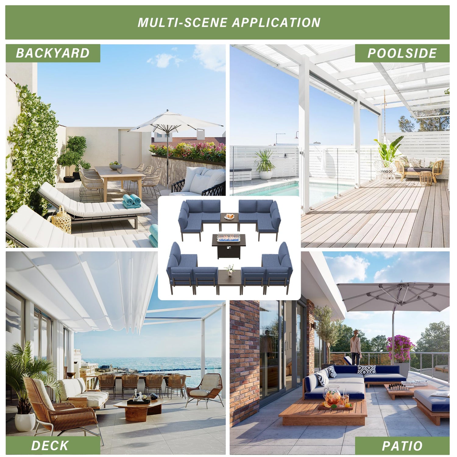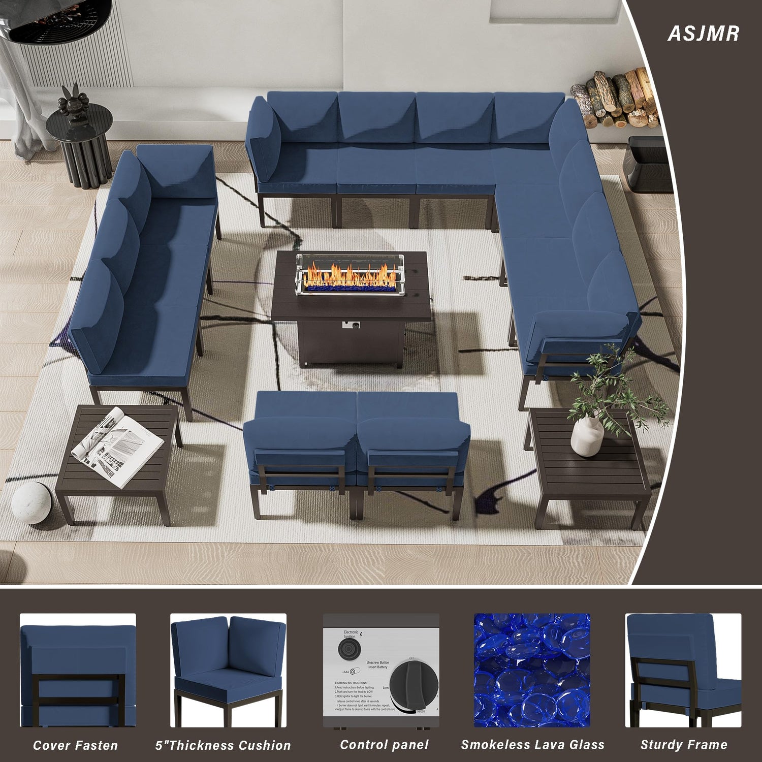 ASJMR Patio Furniture Set,15 Pieces Modern Outdoor Conversation Set w/43in Gas Fire Pit Table, Outdoor Metal Sectional Sofa with 55000 BTU Propane Fire Pit
