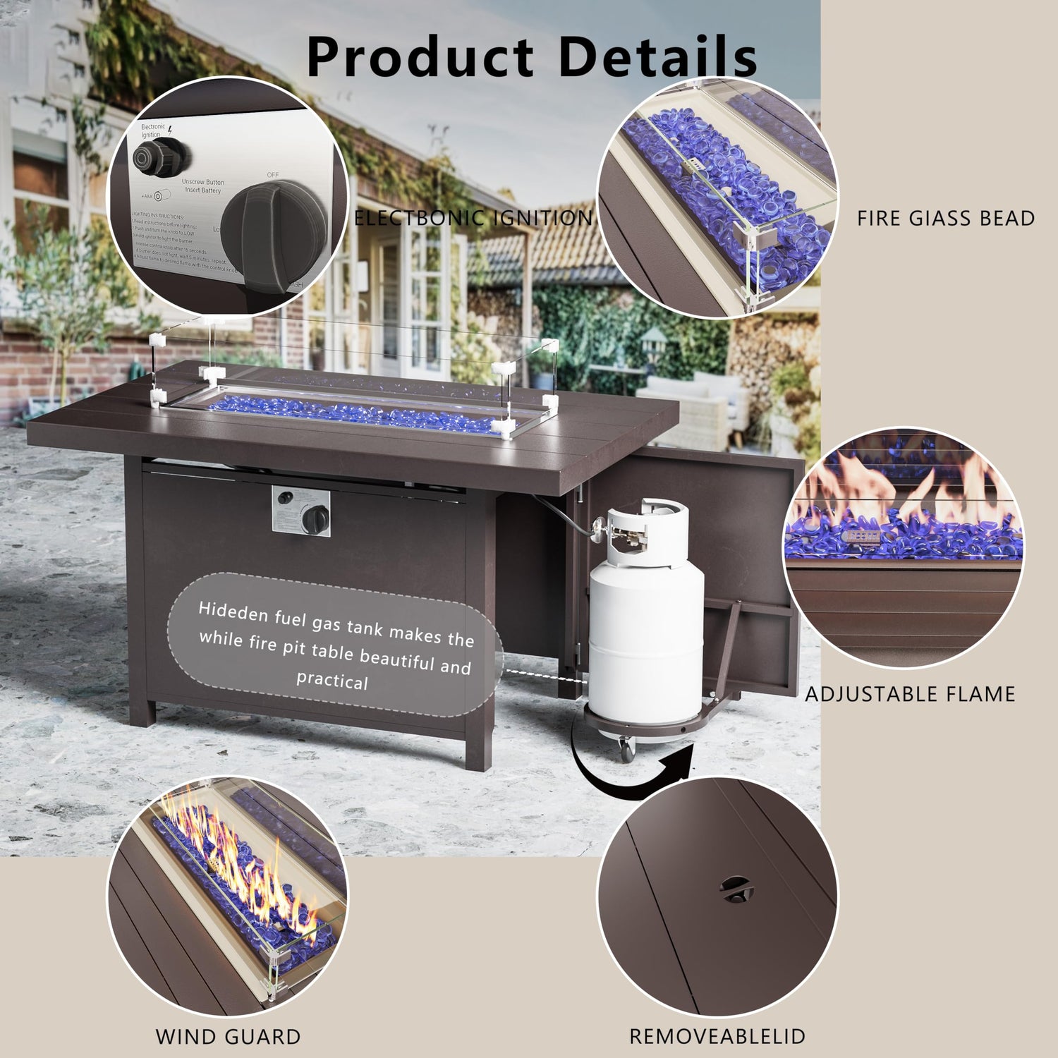 - 【CSA-Approved Safe Bonfire Set】: The propane fire pit is certified by CSA, products quality and safety are guaranteed. The fire pit burner and control panel are made of high-quality stainless steel and have a longer service life. Equipped with a strong wind glass guard to ensure that the propane gas provides stable combustion. The heat output of this safety fire pit table is 55,000 BTU. (Propane Tank NOT INCLUDED)