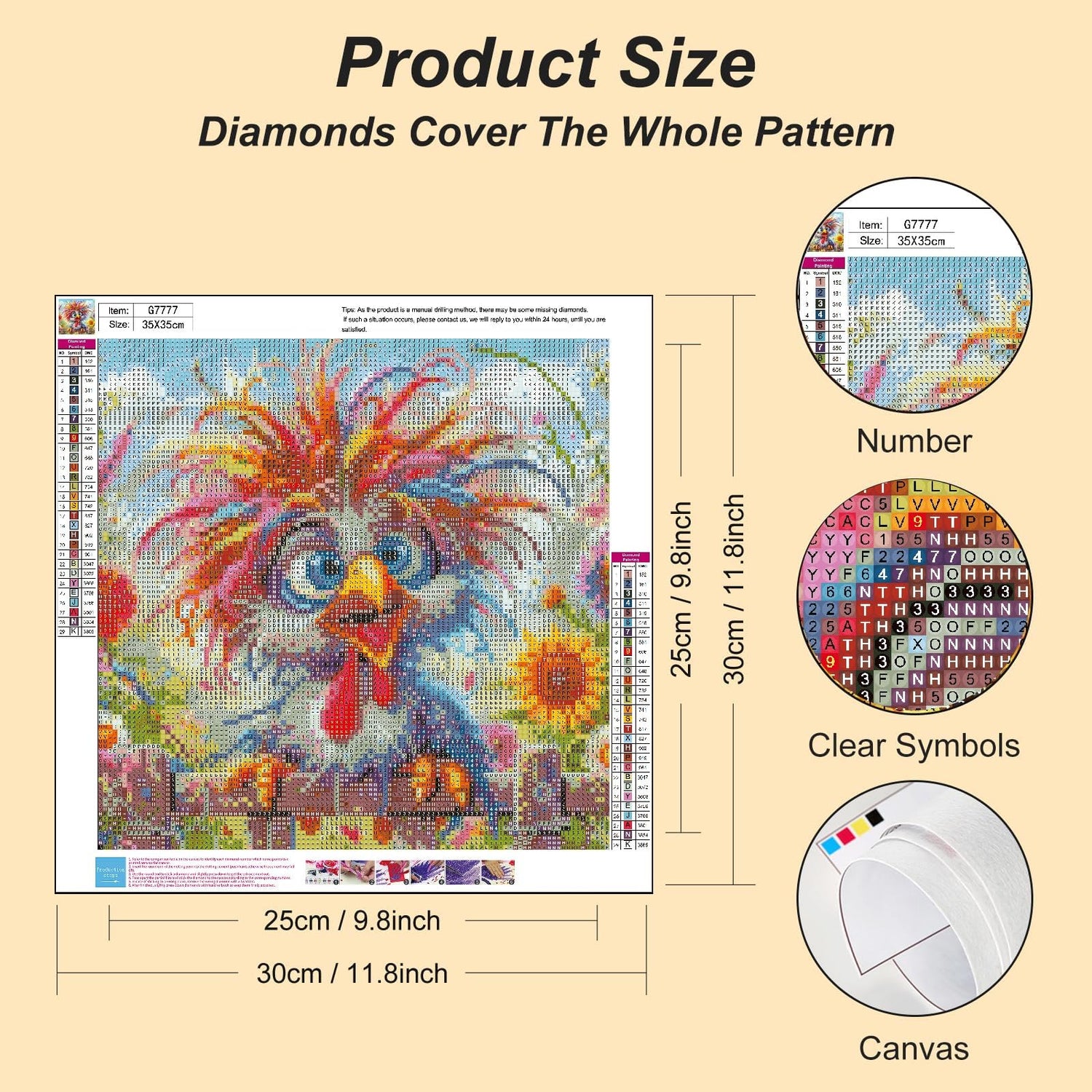 - Vibrant 5D Diamond Painting - Our 5D funny chicken flowers design DIY diamond art kits for adults is meticulously crafted to deliver unparalleled quality. Round gems cover the whole picture, making the picture more shinning and realistic, and the diamond art kits come as a canvas with a sticky background that is protected by a plastic covering, the background is in good look, the letter symbols are high-definiton and easy to read