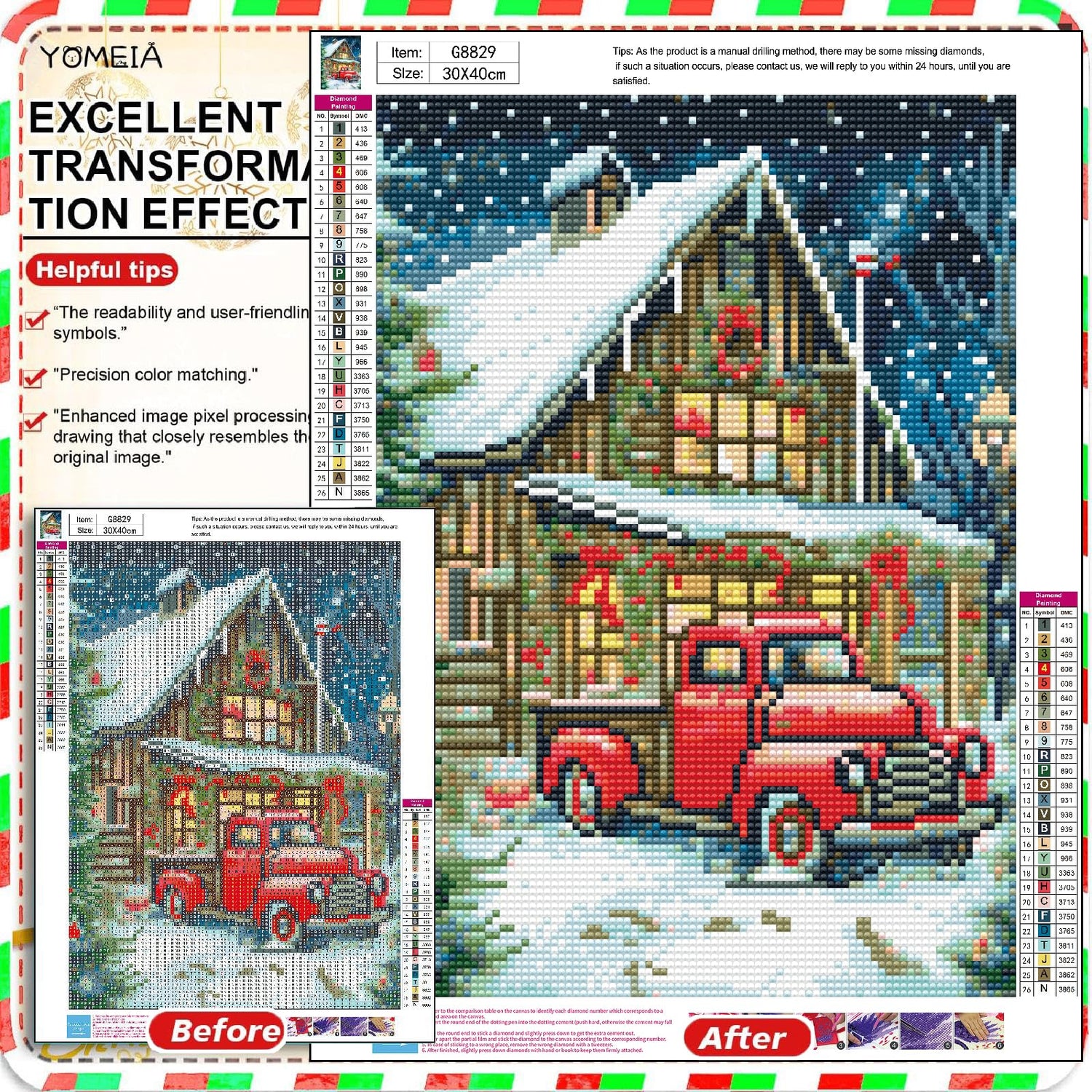 - Vibrant 5D Diamond Painting - Our 5D DIY christmas red truck in front of a barn design diamond art kits for adults is meticulously crafted to deliver unparalleled quality. Round gems cover the whole picture, making the picture more shinning and realistic, and the diamond art kits come as a canvas with a sticky background that is protected by a plastic covering, the background is in good look, the letter symbols are high-definiton and easy to read