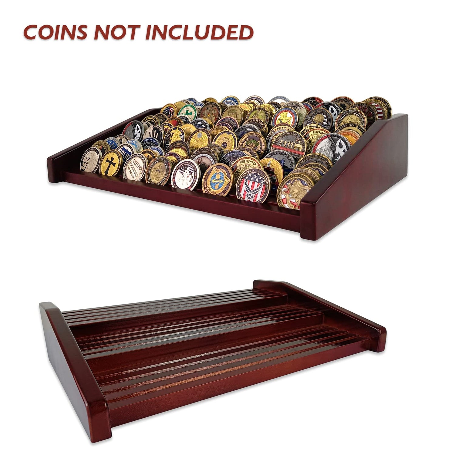 - Military challenge coin display handmade solid wood, unique structure ,different from other display stands made of MDF,high quality spray paint covers the entire challenge coin display holder and is fade resistant,mahogany finished