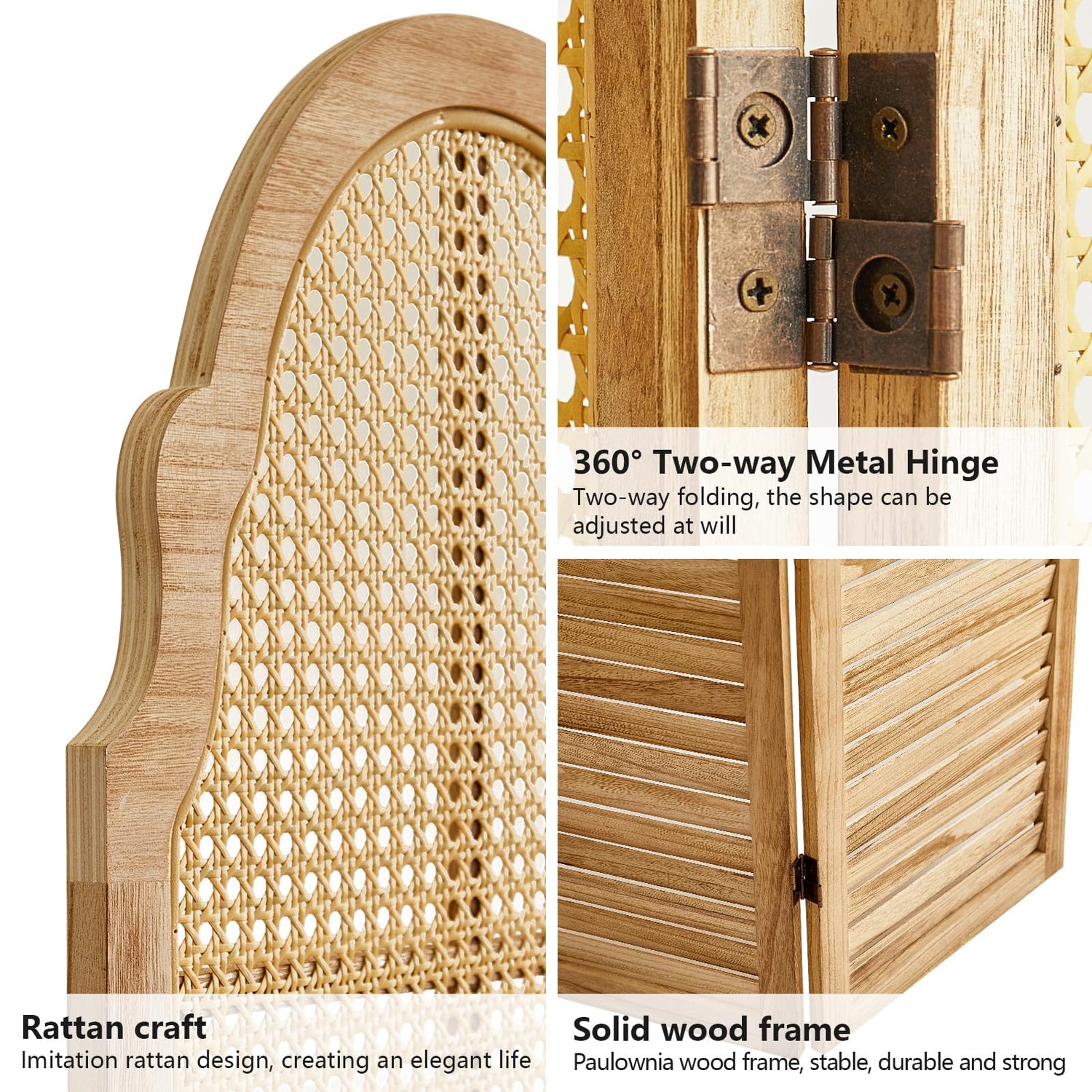 - Freestanding Folding Privacy Screen: Each panel of the Asnefeli rattan room divider is 15.7 inches wide, and each panel is connected by 2 two-way metal hinges. The room divider panel can be folded in any direction according to your preference, and the shape of the wooden privacy screen can be adjusted according to your needs. The room divider screen is easy to store and takes up only a small space when fully folded.