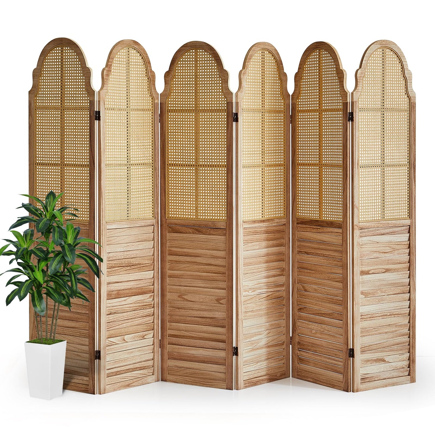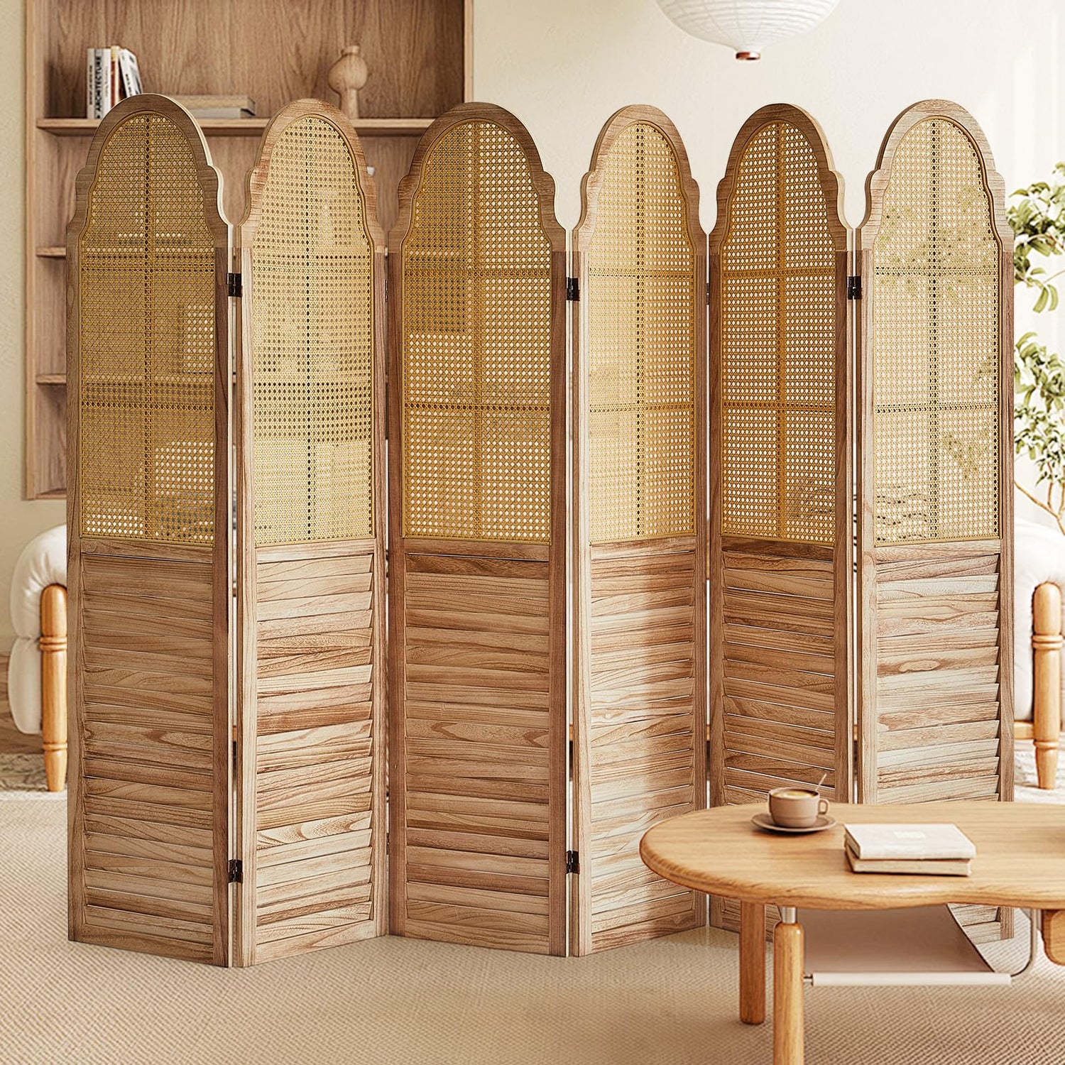 Asnefeli 6 Panels Room Divider Screen, Rustic Rattan Room Divider, Wood Folding Privacy Screen, Foldable Wood Divider Wall, Portable Partition Panel, Wall Divider for Room Separation (Natural)