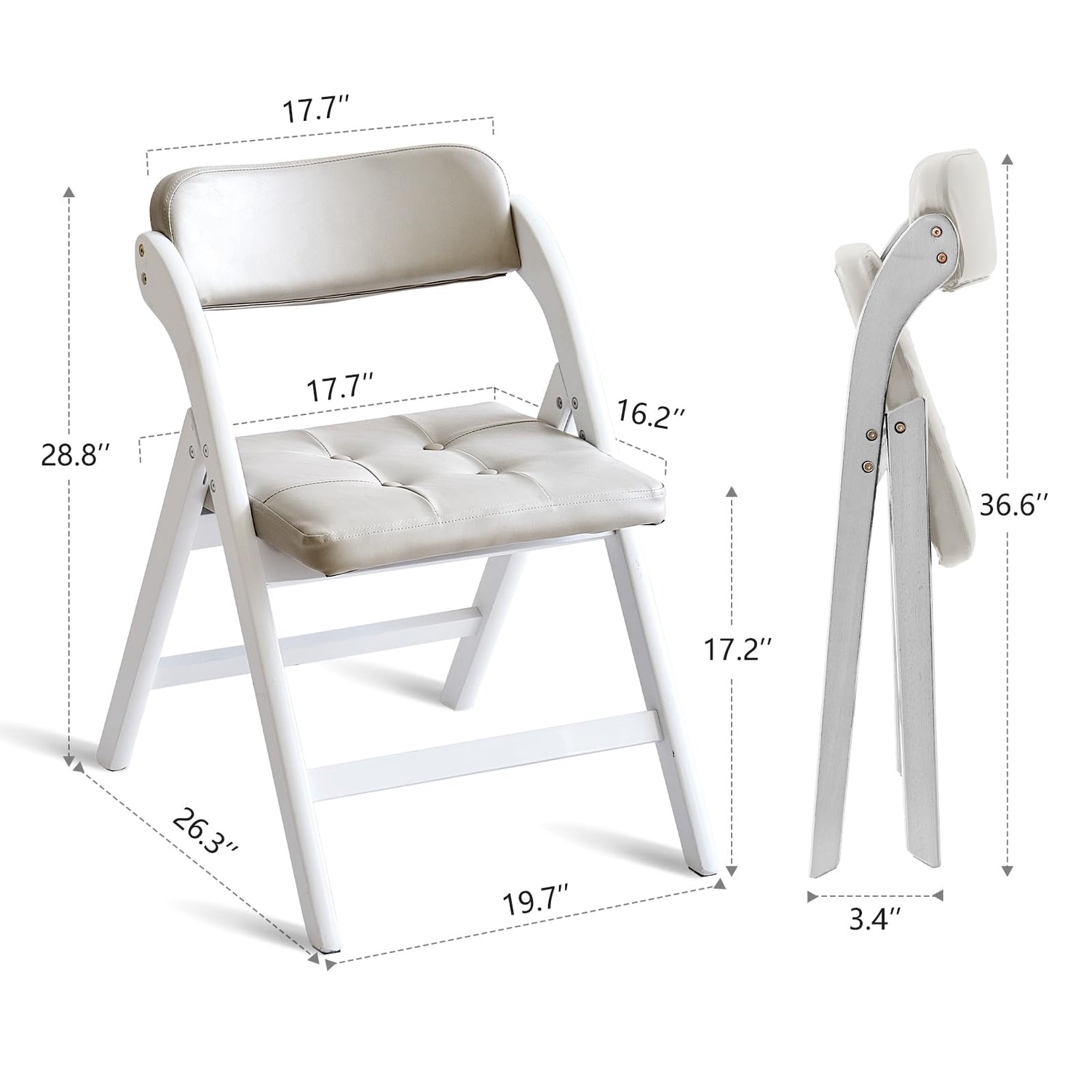 - Fast Foldable Design Wood Chair: Asnefeli wooden folding chairs 2 pack can be easily folded into a compact size for easy storage and transportation. The padded folding chairs with cushion measures approximately 26.3"L x 19.7"W x 28.8"H when unfolded, providing ample seating space, and measures 3.4"L x 19.7"W x 36.6"H when folded, the stackable wood chairs does not take up too much floor space, making it ideal for small apartments office or homes