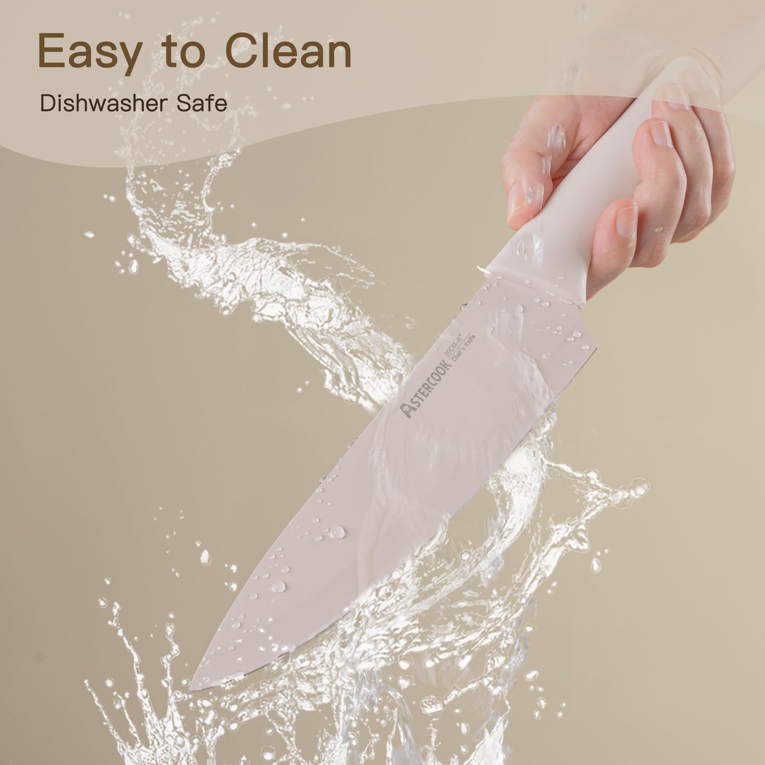 Astercook Knife Set, 13 Pieces Kitchen Knives Set with Healthy Anti-Rust Coating, Dishwasher Safe, Stainless Steel Chef Knife Sets with 6 Blade Guards, Perfect Holiday Gifts for Kitchen