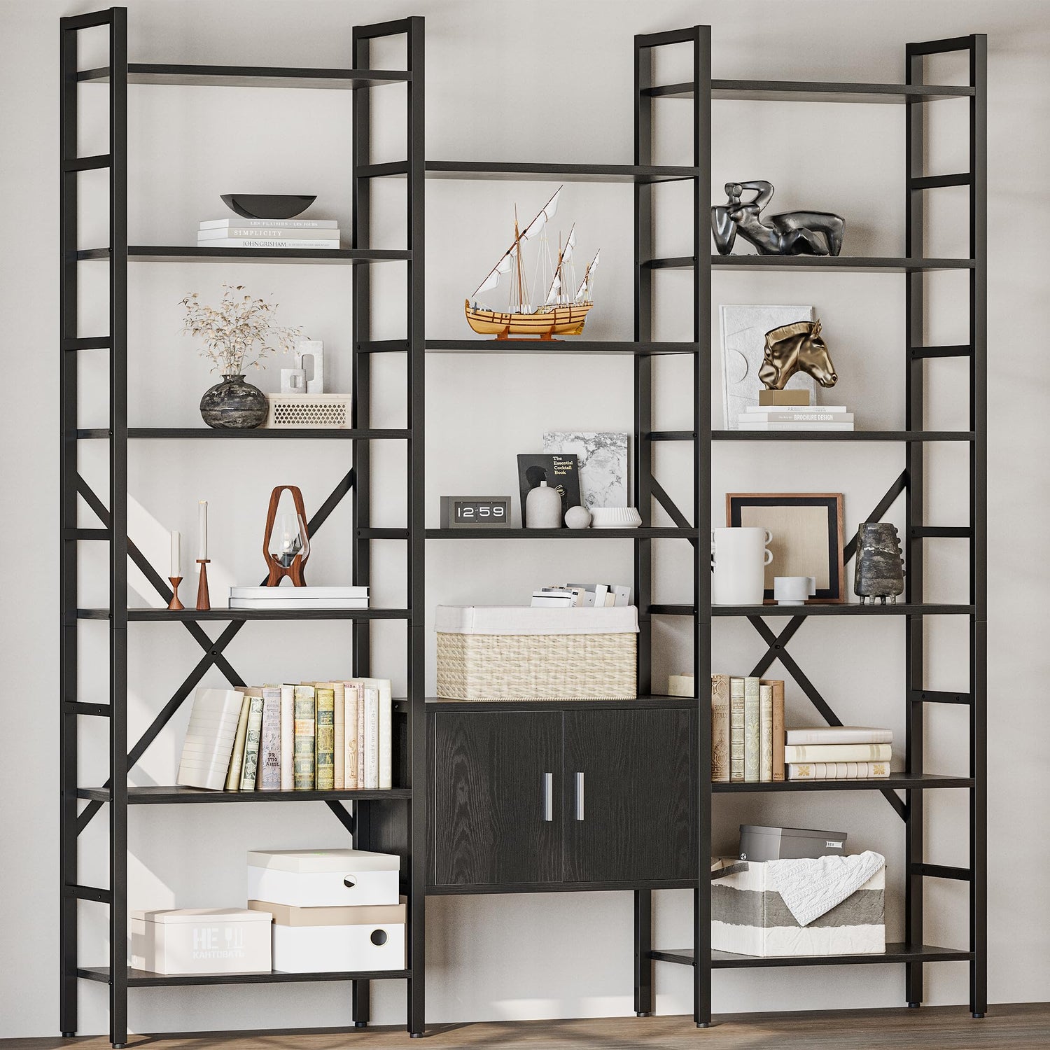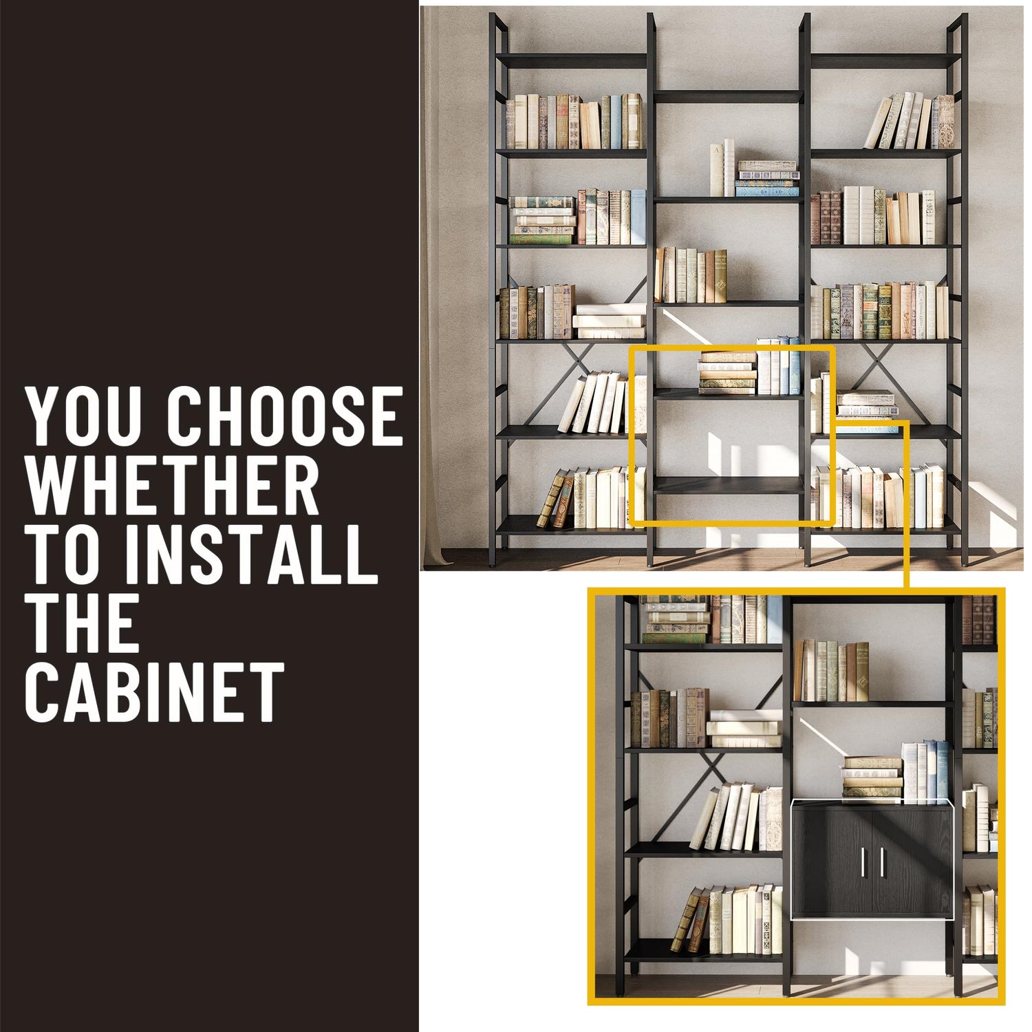 astimey 70x78 “ Triple 6 Tier Book Shelf, Industrial Large Bookcase with Storage Cabinet, Tall Bookshelf with 16 Open Display Shelves Metal Frame Furniture for Living Room Bedroom Home Office Black