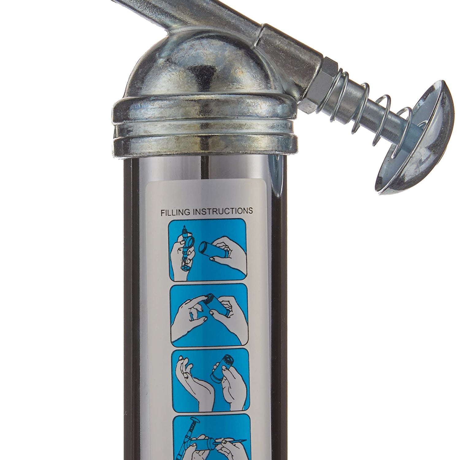 - Holds 3 ounces of lubricant, can be operated with one hand