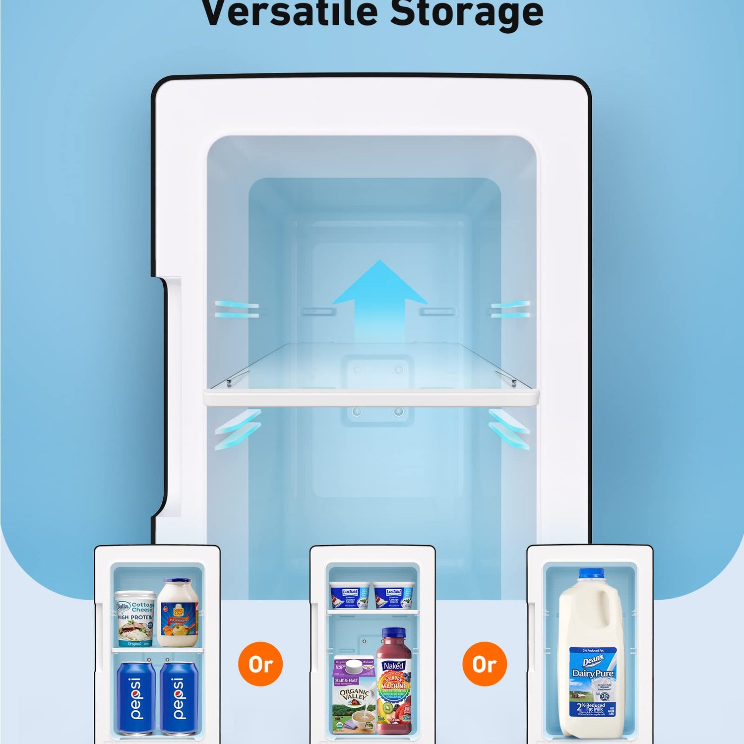 - Suitable Capacity: Its upgraded interior readily stores up to 8*355ml cans or 4*20oz bottles of water. The detachable shelf lets you easily store beverages, cosmetics, and foods at varying heights
