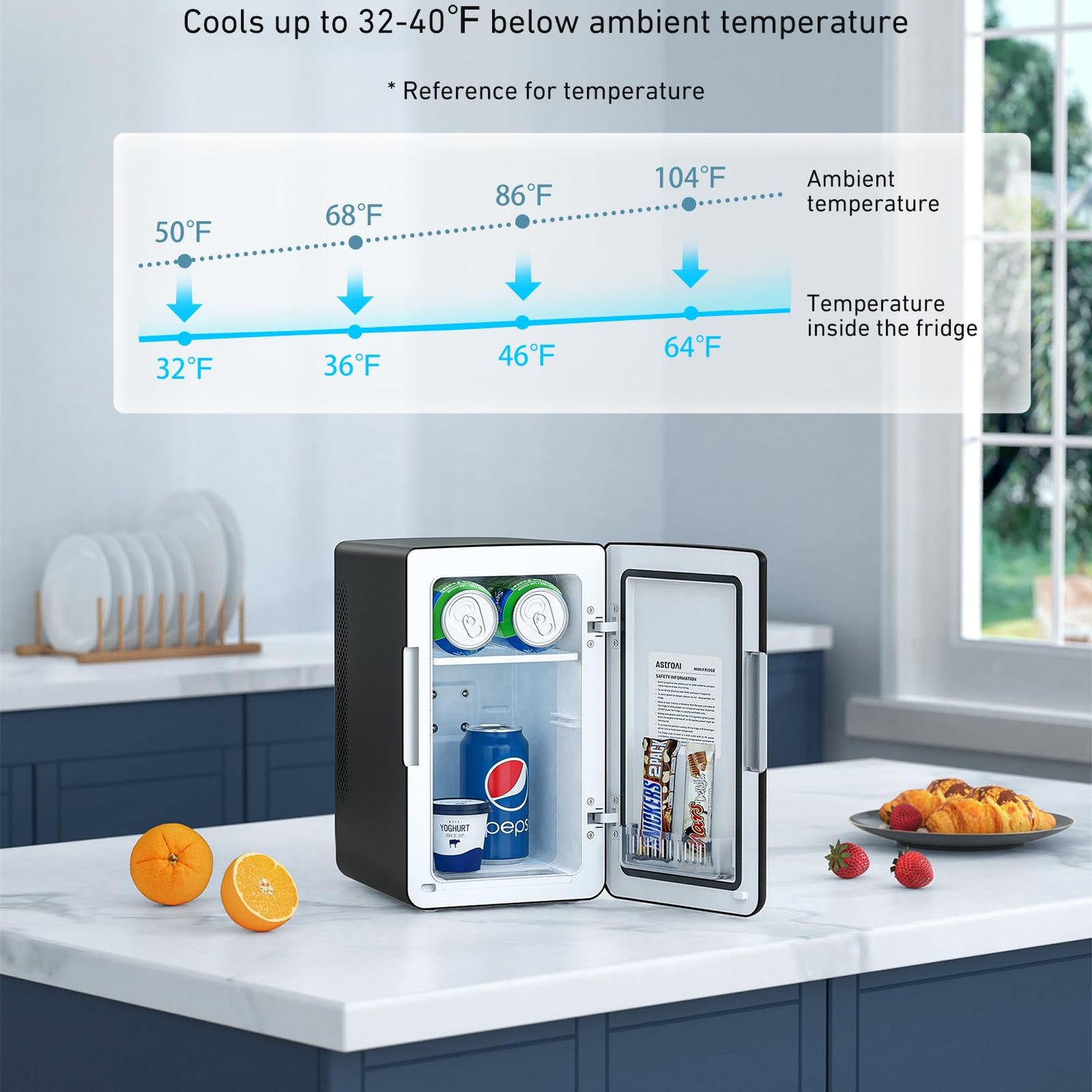 - Warming and Cooling Functions: Cools up to 32-40℉(18-22℃) below ambient temperature, keeps warm up to 150°F (66°C). With upgraded technology like an enhanced refrigeration chip and improved insulation, the AstroAI mini fridge delivers superior temperature control and performance. NOTE: The refrigerator needs to be powered on to actively cool. In order to ensure efficient cooling, avoid frequently opening the doors