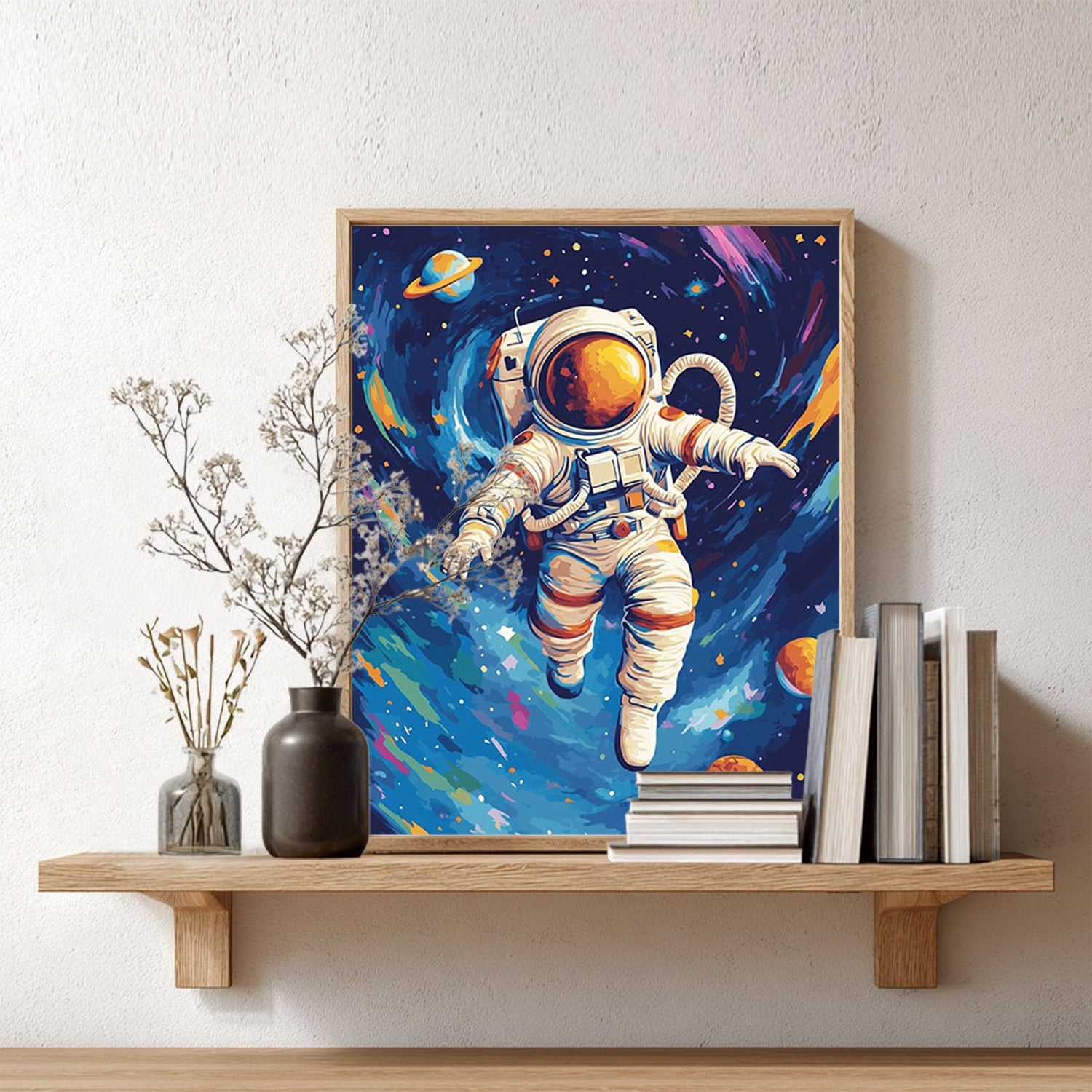 Astronaut Paint by Number, Space Paint by Numbers Kit for Adults, Outer Space Acrylic Painting, Planets Canvas Wall Art, Astronaut Floating Poster for Home Wall Decor - Universe(16x20inch)