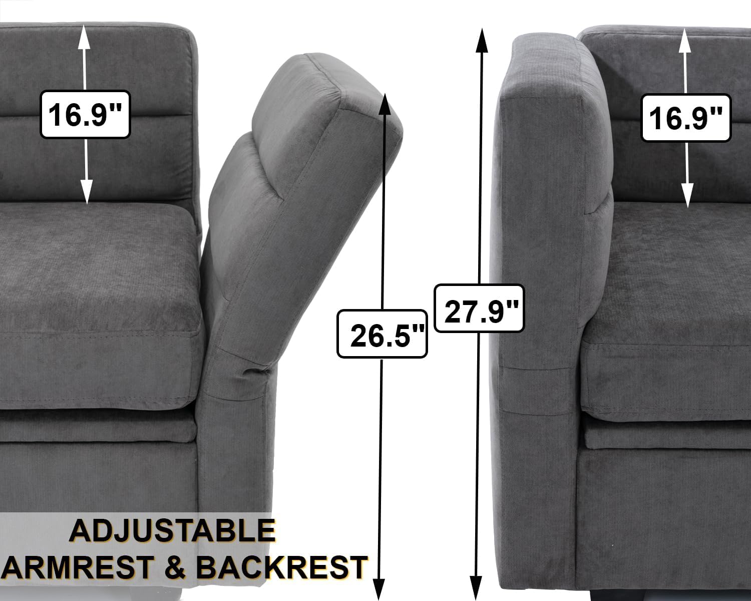 - Storage Loveseat with Reclined Design: Both Arms and backs with reclining function that provides you an ultra-comfortable sitting experience. Each modular couch with adjustable armrest & backrest provide you with much support and fit with the ergonomic concept with 3 levels different angle within135° that you can stretch out well, or use as recliner loveseat for take a nap in your offices.