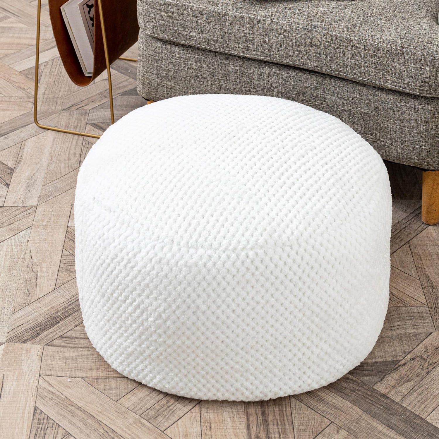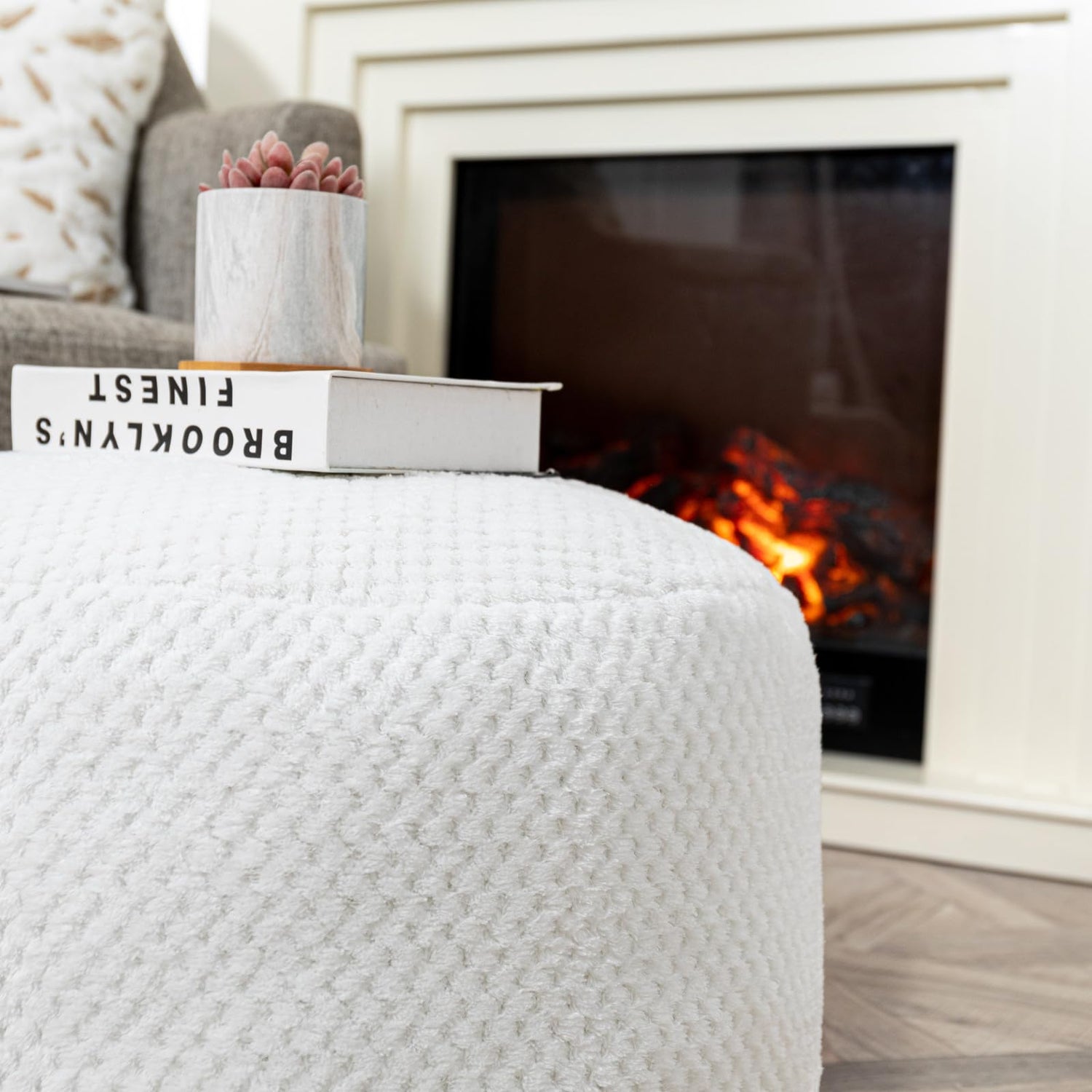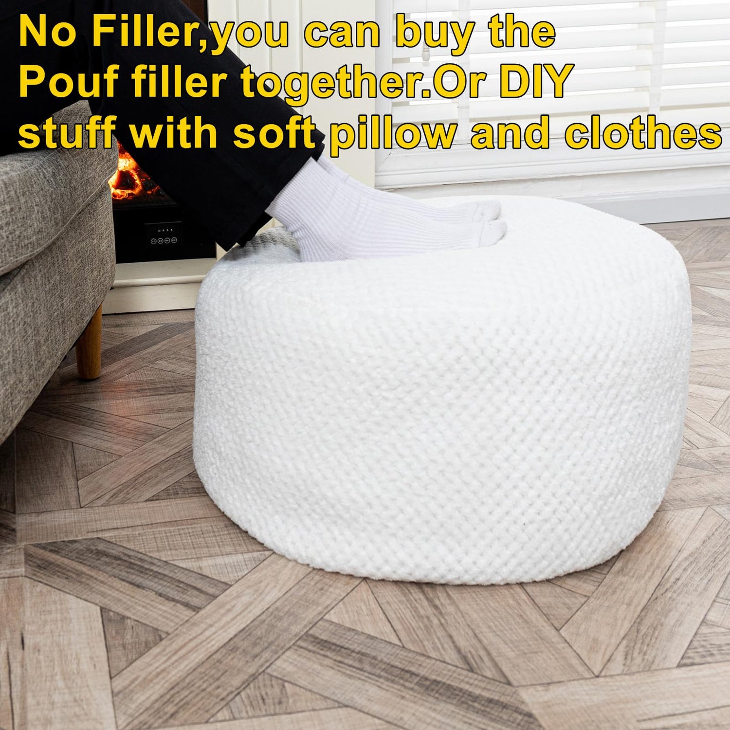 Asuprui Pouf Ottoman Unstuffed Pouf Ottoman Foot Rest No Filler Floor Pouf Soft Foot Stool 20x20x12 Inches Fuzzy Chair Floor Chair Foot Rest with Storage for Living Room Bedroom White Pouf Cover