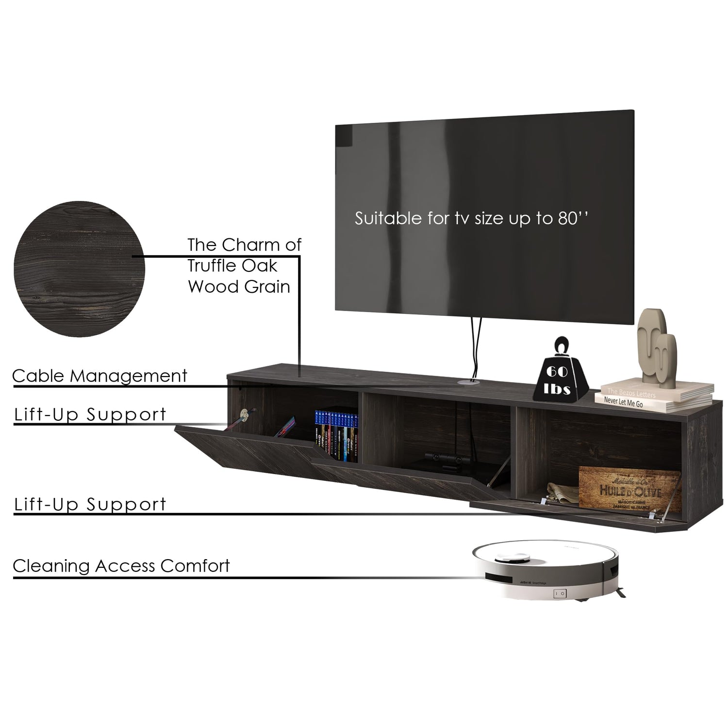 - 65 inch TV Stand : The TV Stand floating is a stylish alternative to traditional TV stands. It easily accommodates a 75 inch TV and 80 inch TV , making it a perfect for bedroom and living room area