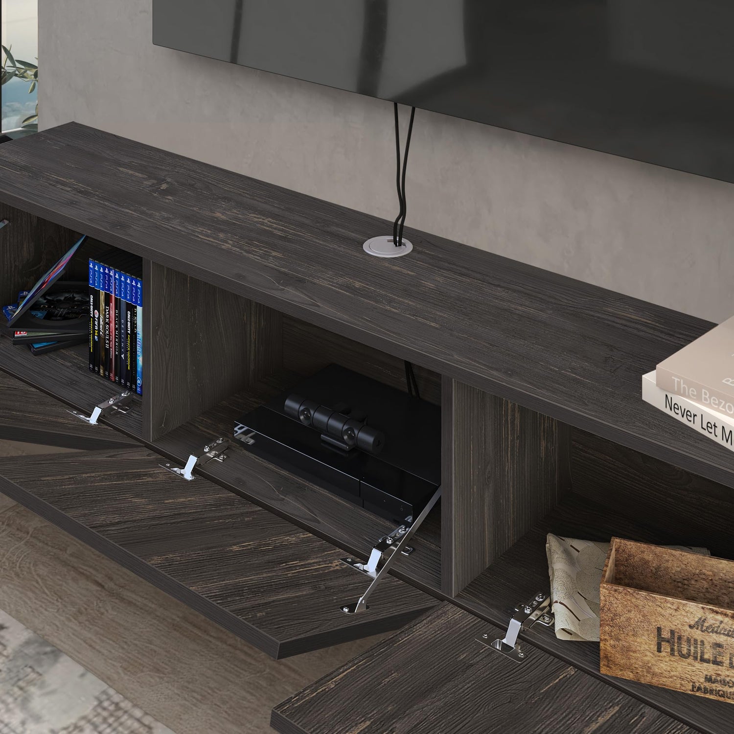 - Wire Management Simplified: Our TV Stand for 75 inch TV integrates seamlessly into your tv entertainment center, featuring clever cable holes at the top to hide wires and keep your tv stand for living room organized and clutter-free
