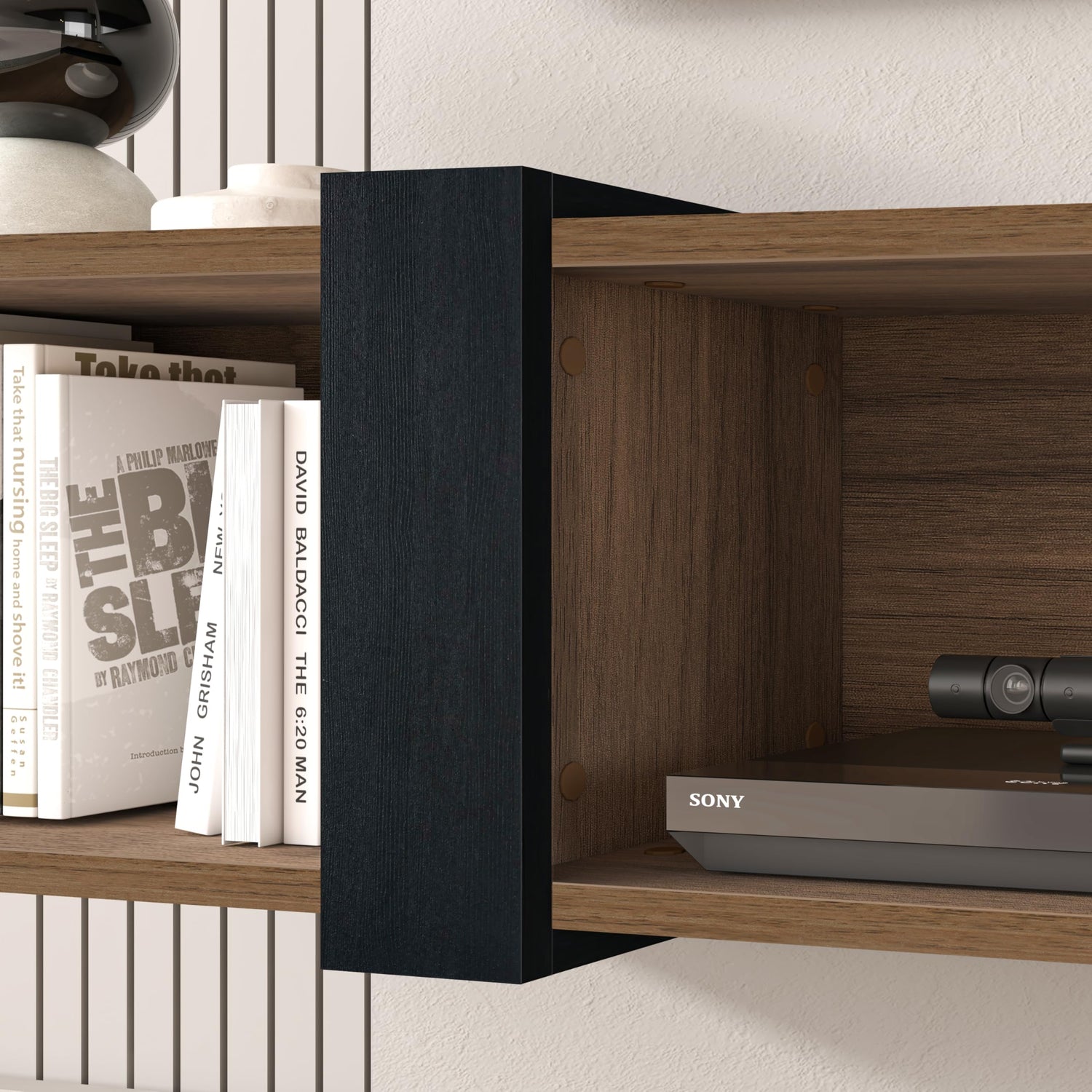 - Cable Management System – This wall mounted tv stand has built-in cable management to keep cords hidden, ensuring a clean and clutter-free entertainment center look